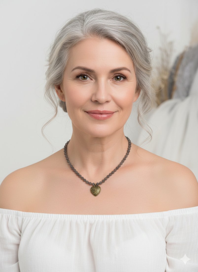 Ten wyjątkowy naszyjnik to połączenie surowej nowoczesności matowych kamieni z romantycznym, nostalgicznym detalem. Stworzony dla kobiet, które cenią dodatki z charakterem, idealnie podkreśla urodę i dodaje klasy każdej stylizacji.