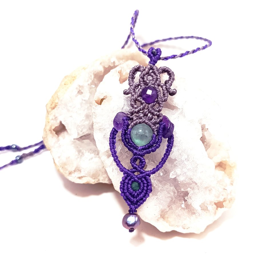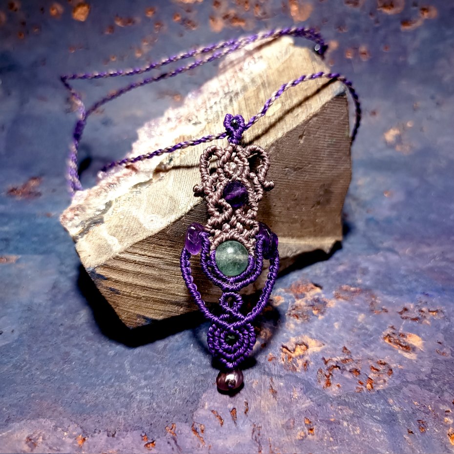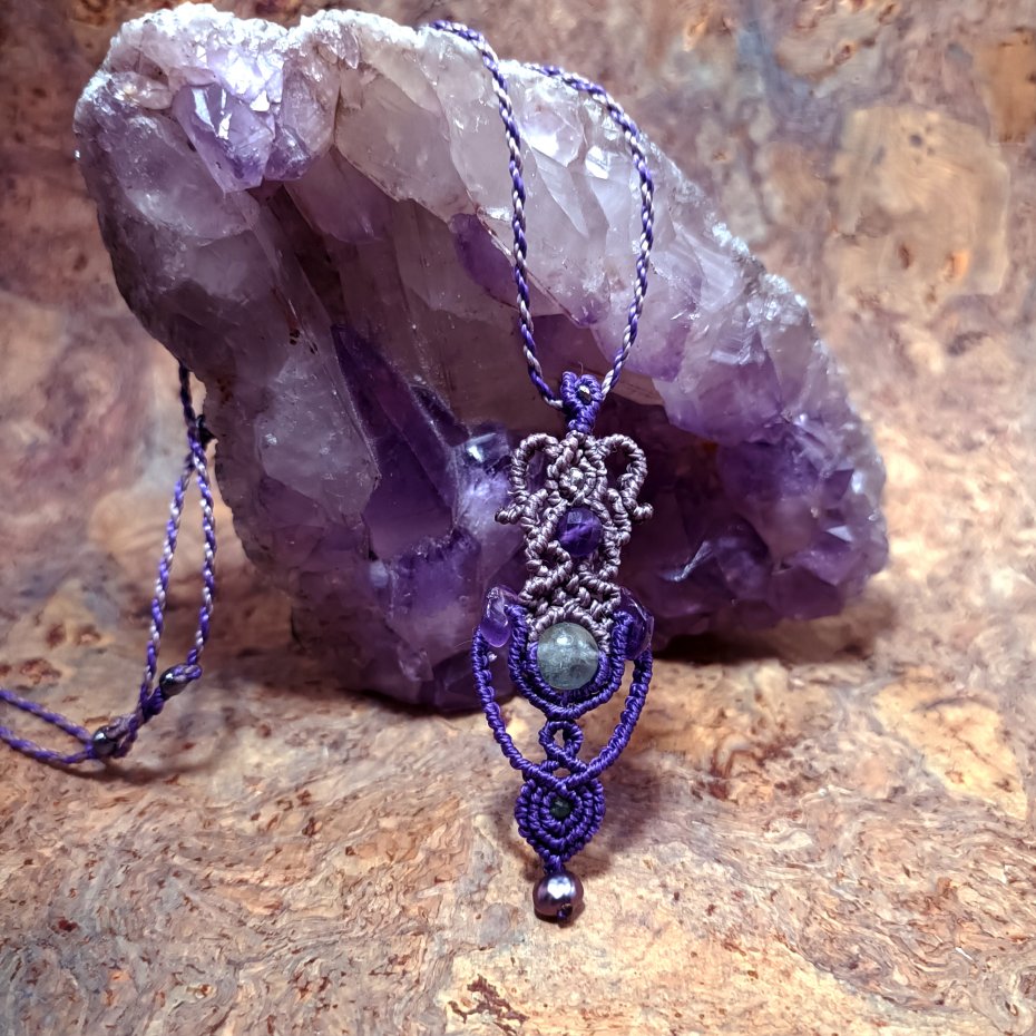 " Naszyjnik Wezyra" jest autorskim rękodziełem. Mikromakrama w połączeniu z naturalnymi kamieniami jest biżuterią elegancką, ciepłą w dotyku, lekką, miłą w noszeniu na co dzień i do wyszukanej kreacji.