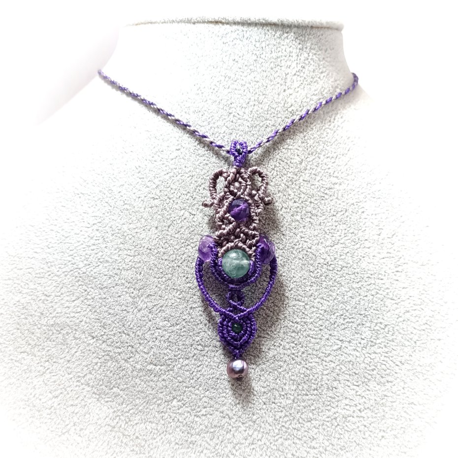 Naszyjnik z fluorytem, ametystem i szmaragdem