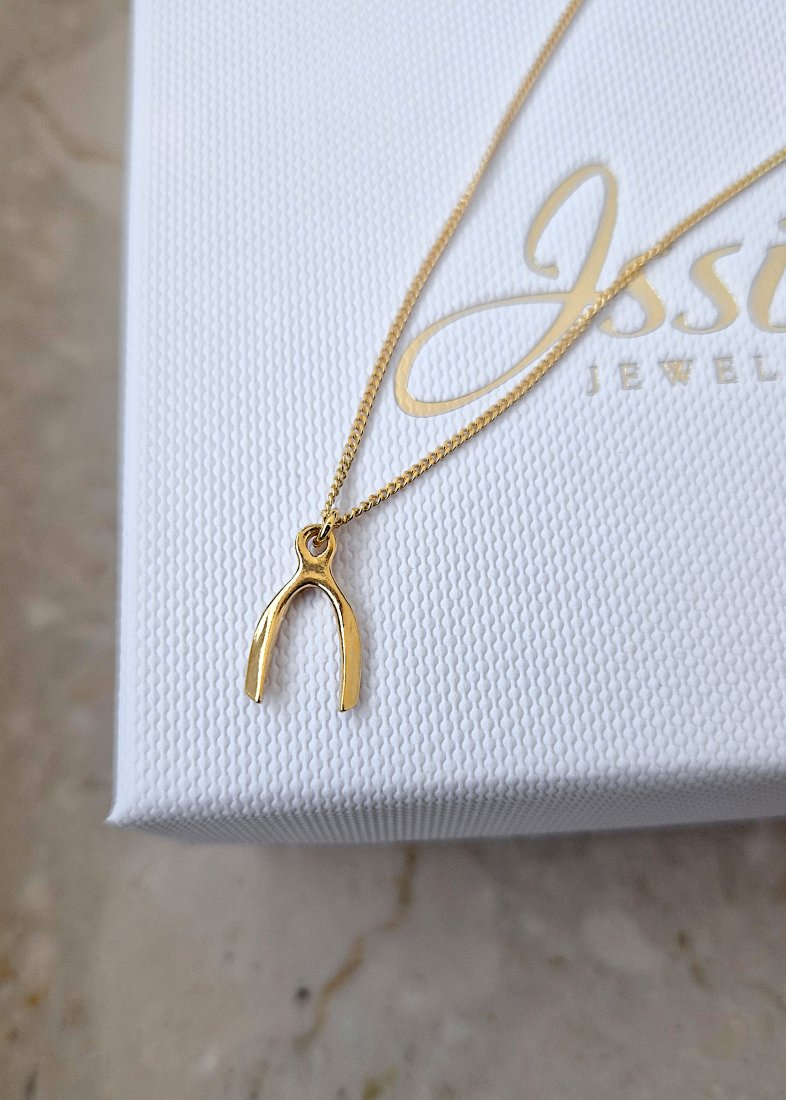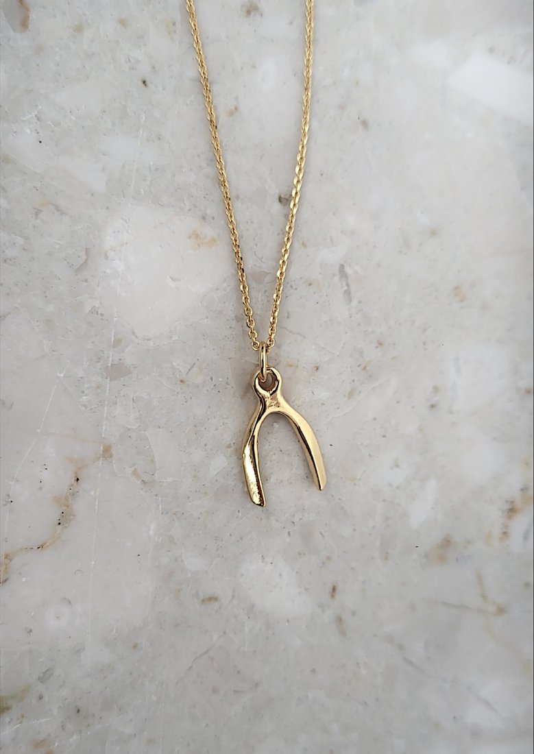 Zawieszka w kształcie kostki wishbone symbolizuje szczęście, powodzenie i pomyślność.
