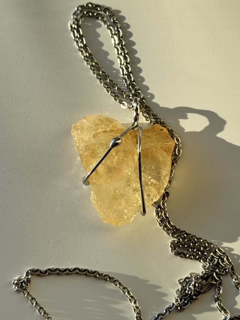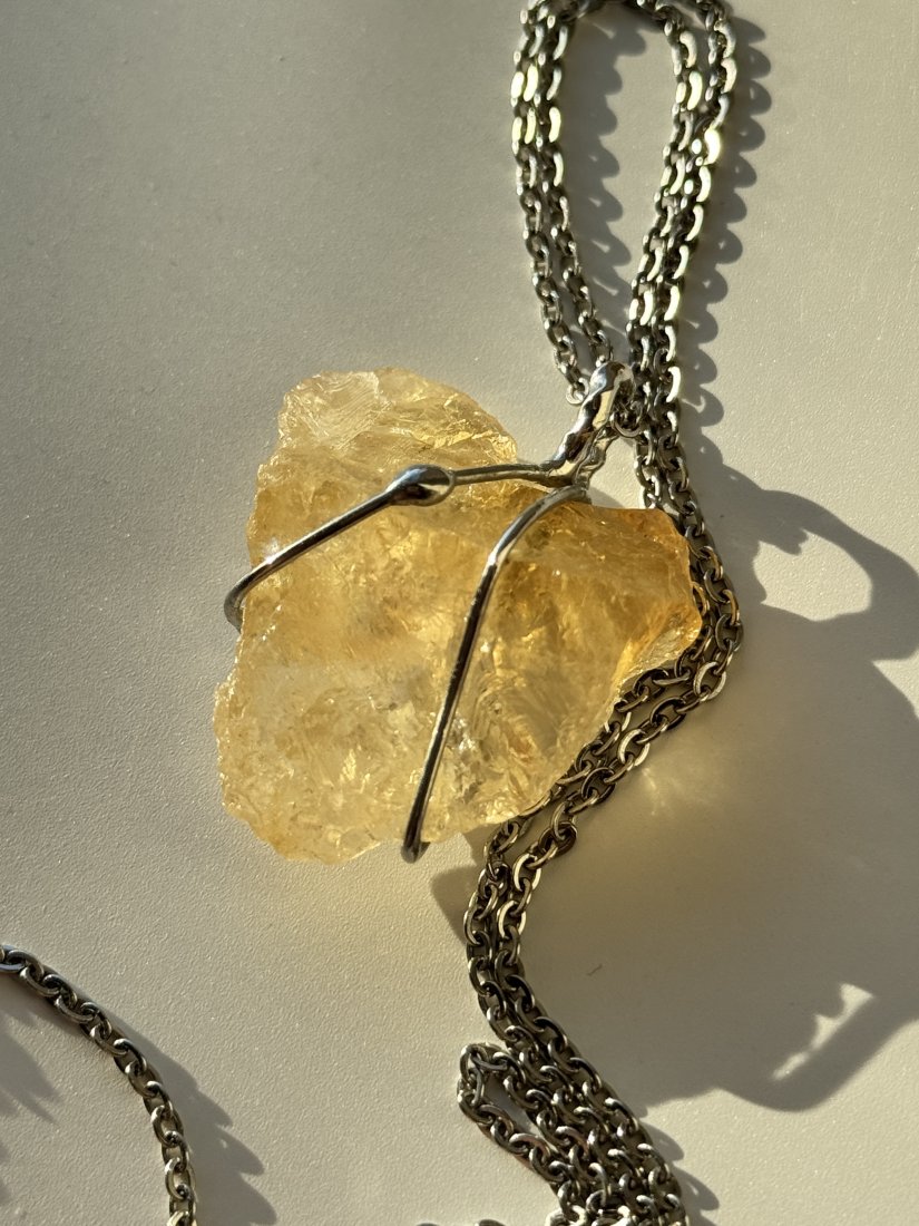 Kamień - Cytryn. Duży, ale nie uciążliwy. Długość łańcuszka od 40 do 60 cm (przy zakupie prosimy o podanie preferowanej długości). Łańcuszek wykonany ze stali chirurgicznej.