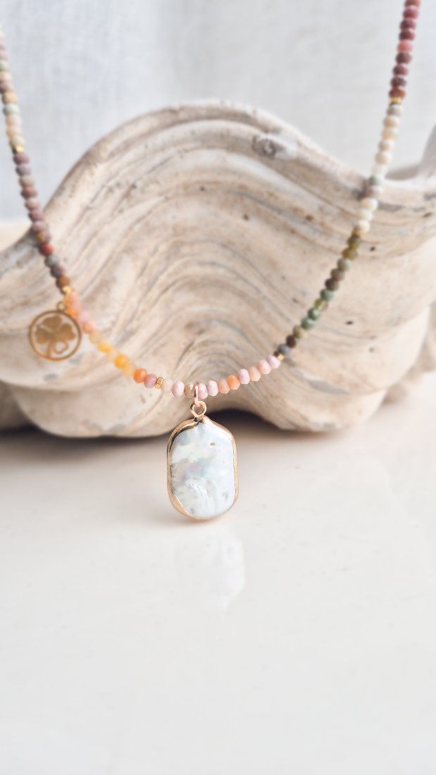 Delikatny, a jednocześnie niezwykle energetyczny naszyjnik wykonany z agatu Alashan – kamienia o wyjątkowej sile i urodzie. Jego subtelne odcienie ziemi, różu, szarości i beżu sprawiają, że każda sztuka jest niepowtarzalna