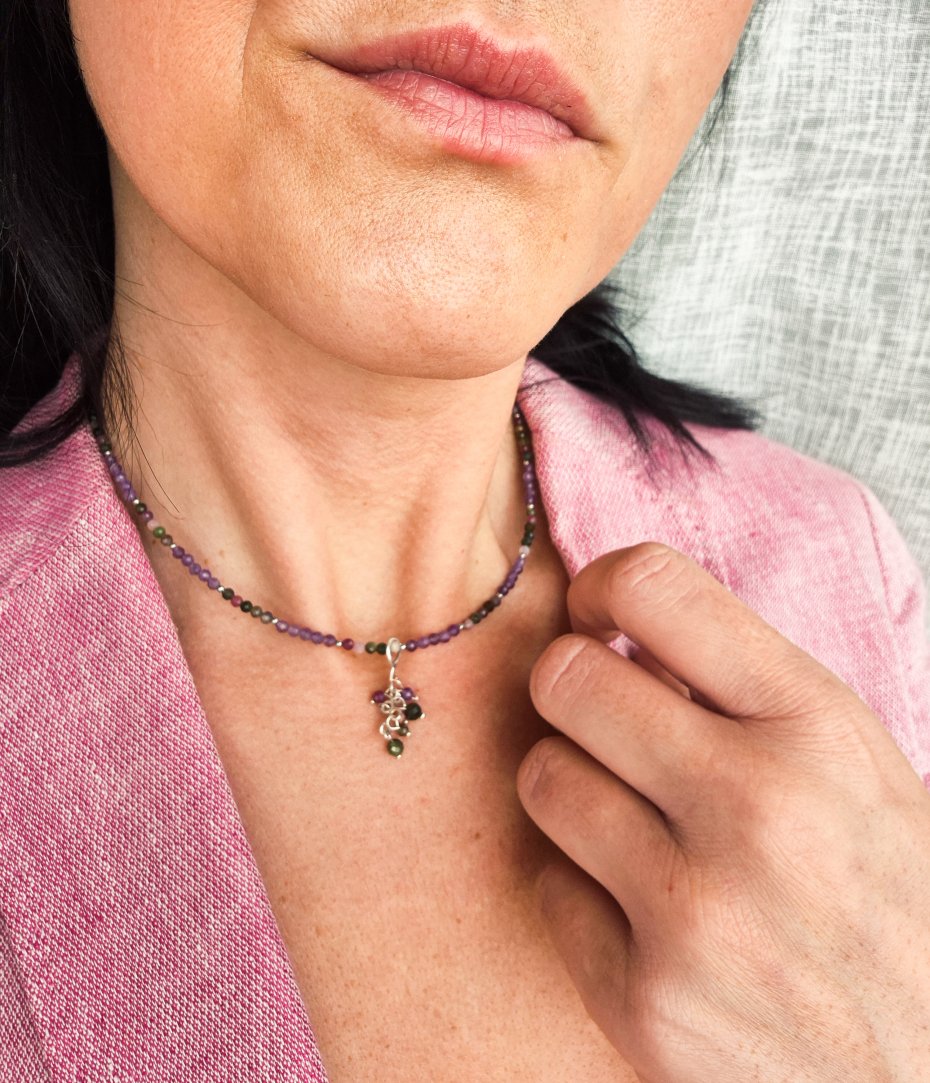 NASZYJNIK Z AMETYTSTÓW I TURMALINÓW