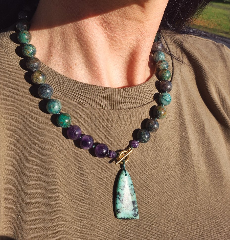 Tagi: #ametyst, #azuryt, #naszyjnik z kamieni, #turkus afrykański
