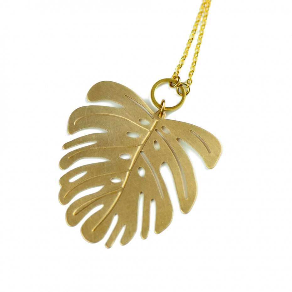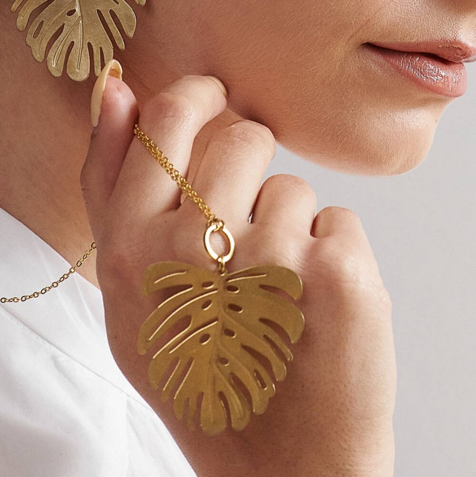 Naszyjnik z zawieszką w kształcie liścia monstery to nowoczesna propozycja dla miłośniczek wyrazistej, naturalnej formy. Złocisty odcień mosiądzu podkreśla subtelne detale roślinnego motywu, tworząc efektowny akcent biżuteryjny. Zawieszka wykonana jest z mosiądzu wolnego od niklu, kadmu i ołowiu, dzięki czemu jest bezpieczna dla skóry. To uniwersalny dodatek, który dopełni zarówno casualowe stylizacje, jak i wieczorne zestawy - świetny wybór także na prezent.