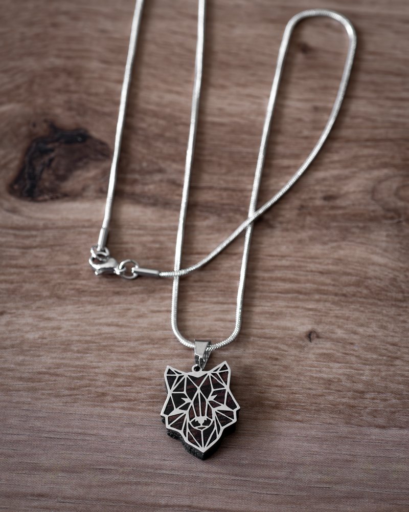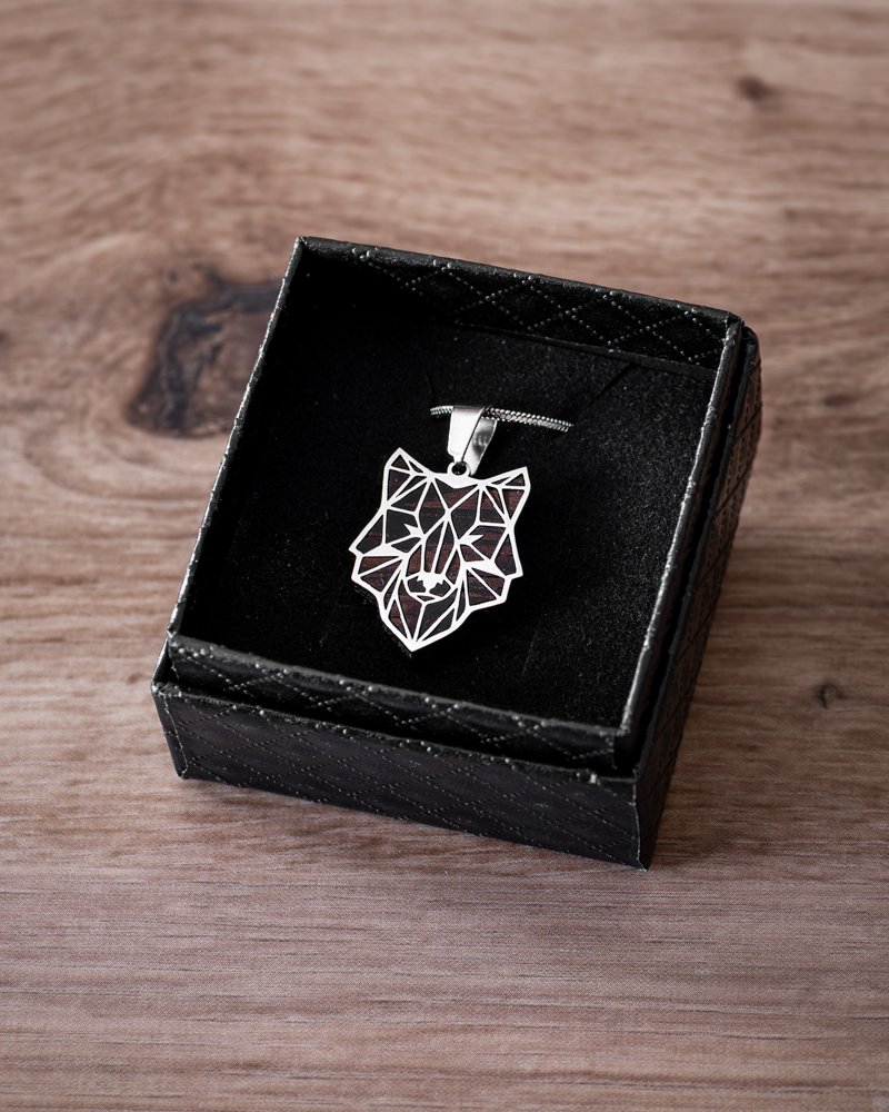 Naszyjnik z głową wilka to połączenie nowoczesnej formy graficznej i naturalnego drewna. Wyrazisty wzór i elegancki łańcuszek sprawiają, że jest to biżuteria dla osób ceniących siłę, niezależność i unikalny styl.