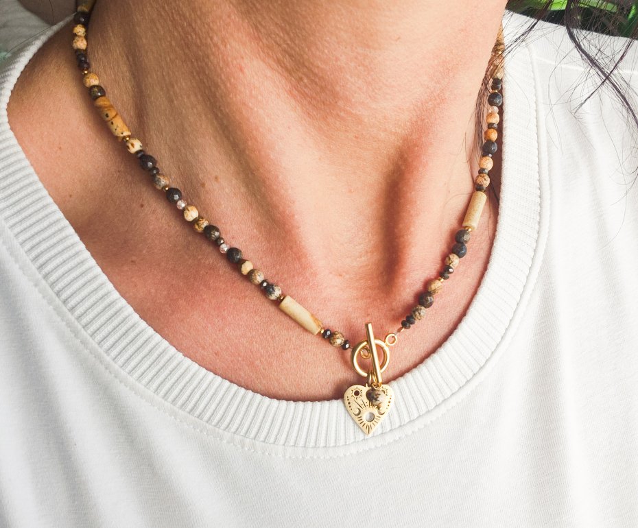 Ten naszyjnik to połączenie ciepłych odcieni ziemi, złota i natury ????