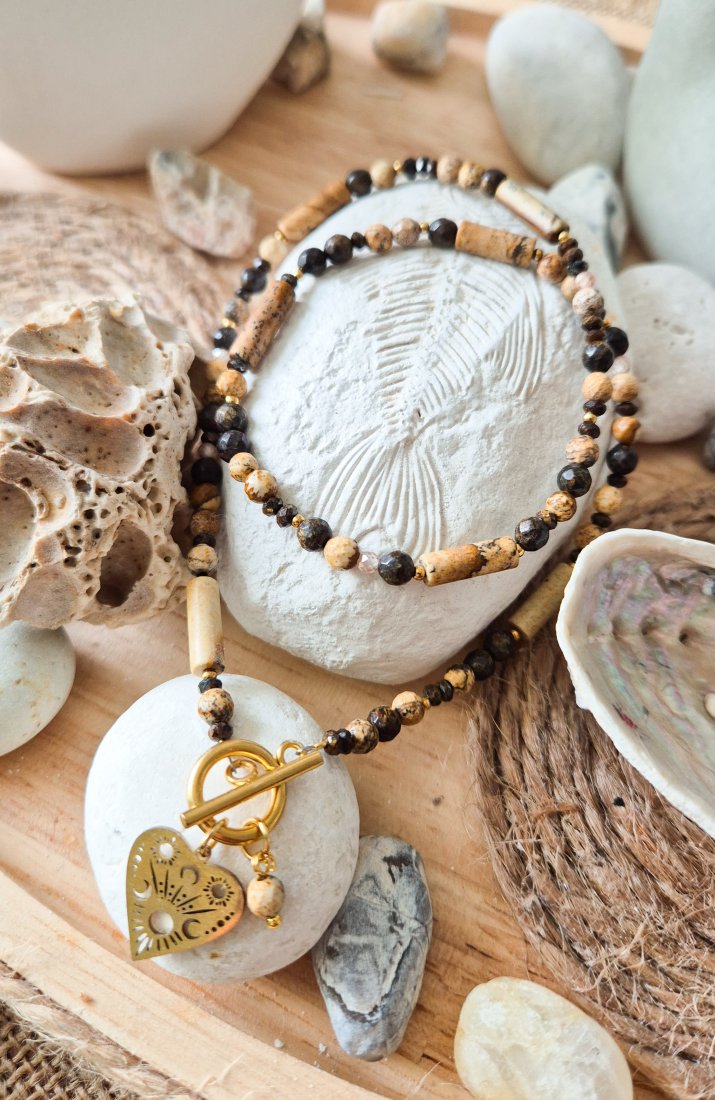 ????✨ Ręcznie robiony naszyjnik z naturalnych kamieni – jaspis krajobrazowy i bronzyt ✨????