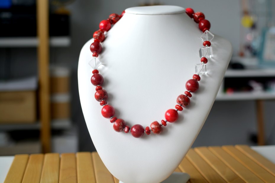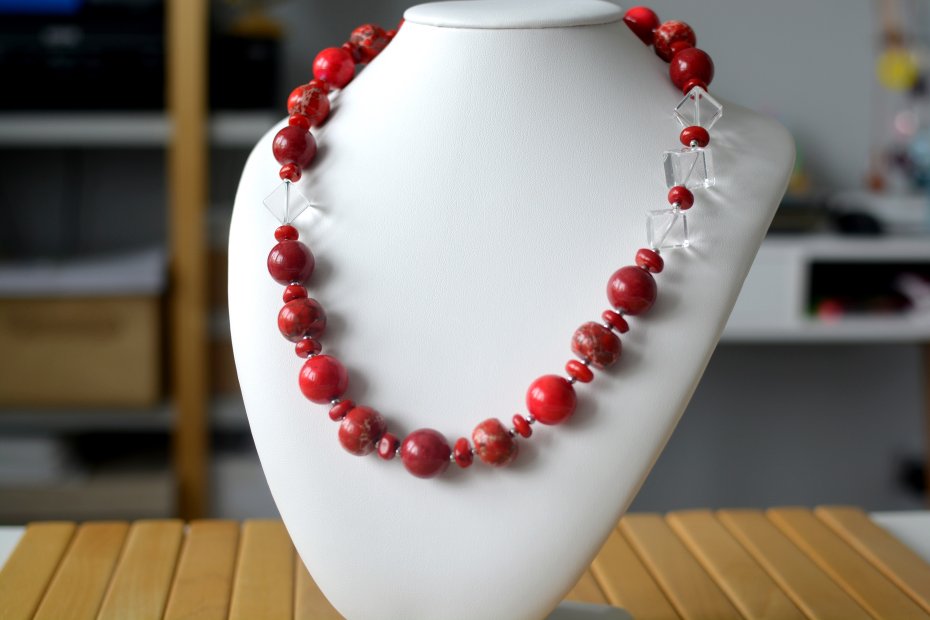 Tagi: #jaspis, #klasyczny naszyjnik, #kryształ górski, #naszyjnik z kamieni