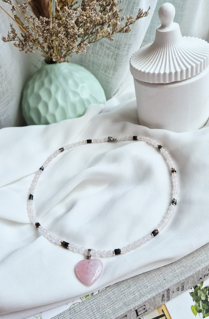 Tagi: #kwarc różowy, #naszyjnik z kamieni, #serce, #turmalin