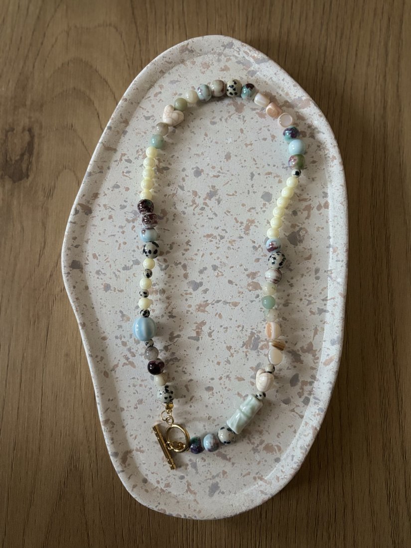 Na sprzedaż naszyjnik handmade wykonany z kamieni naturalnych, ceramicznych oraz plastikowych.