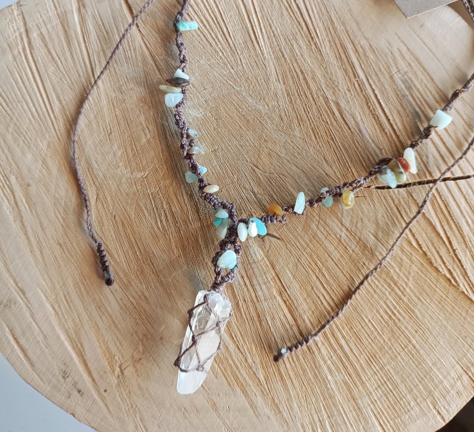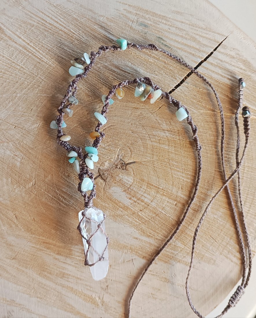 Naszyjnik z kryształem lemuryjskim (wielkość kamienia to 1,7/ 3,7 cm). Dodatkowe kamienie to niereguralne bryłki amazonitu.
