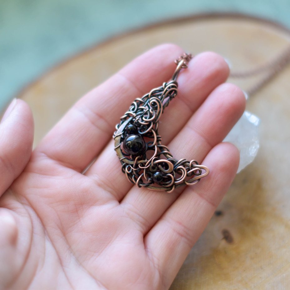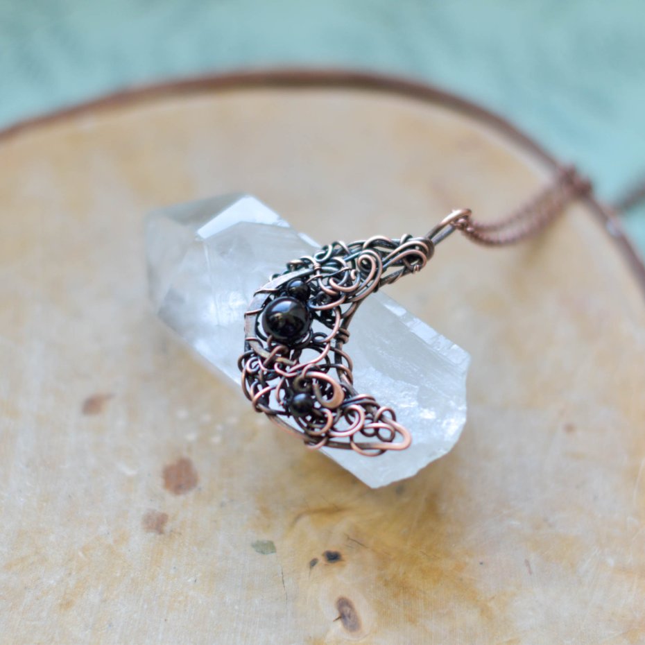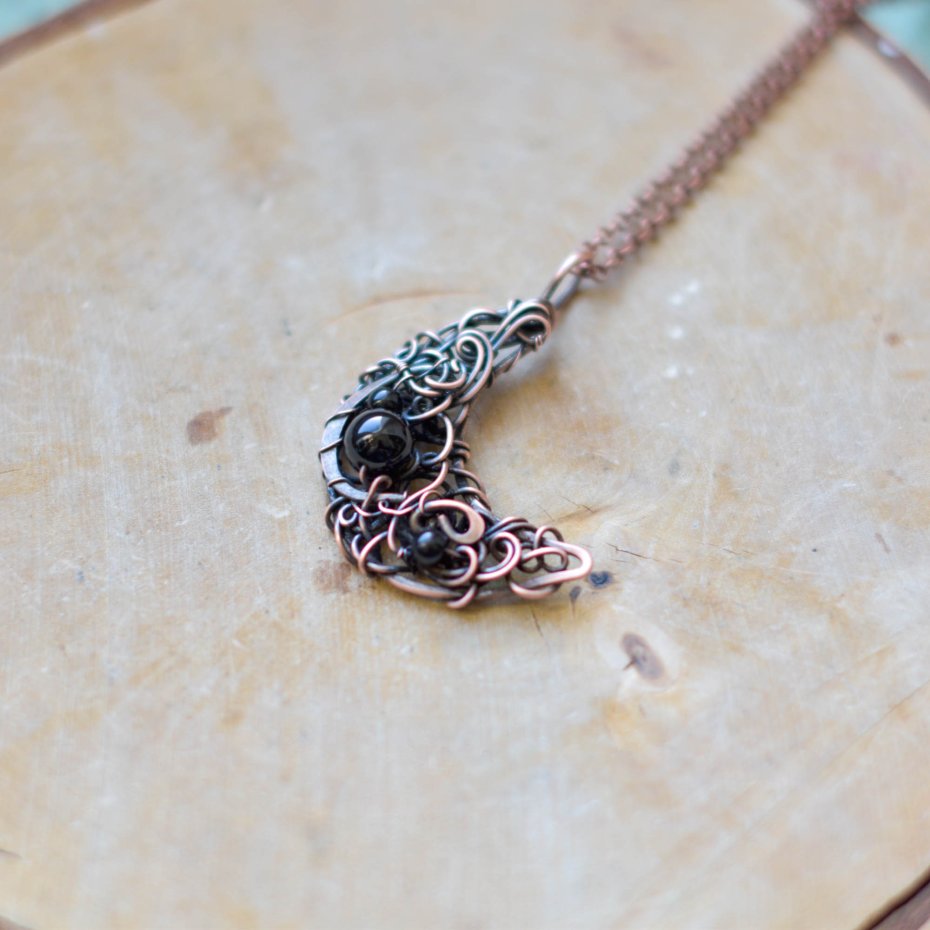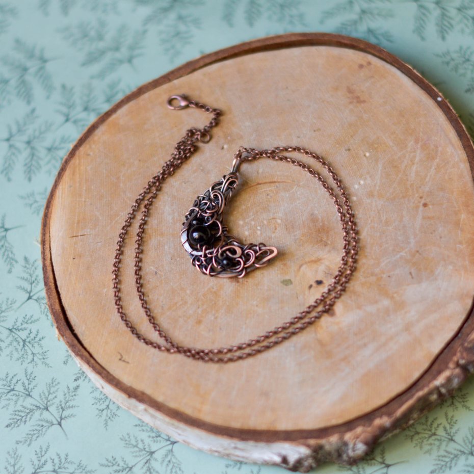 Tagi: #biżuteria wirewrapping, #miedziany naszyjnik, #naszyjnik z ksieżycem, #wisior księżyc