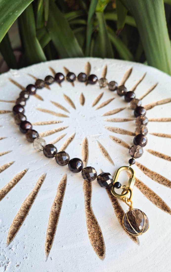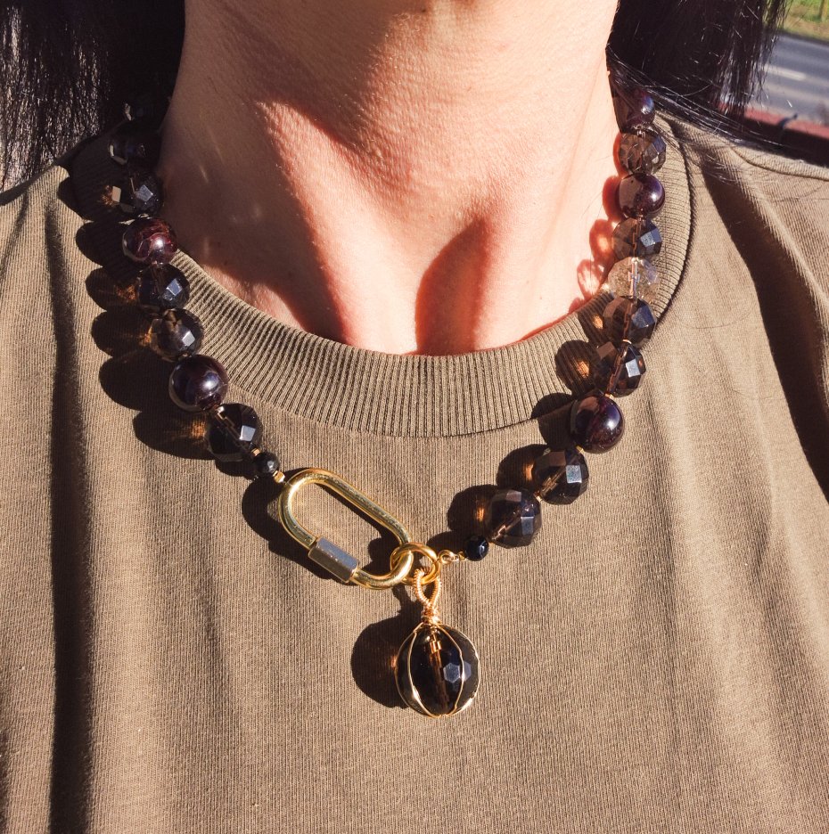 NASZYJNIK Z KWARCU DYMNEGO I GRANATU