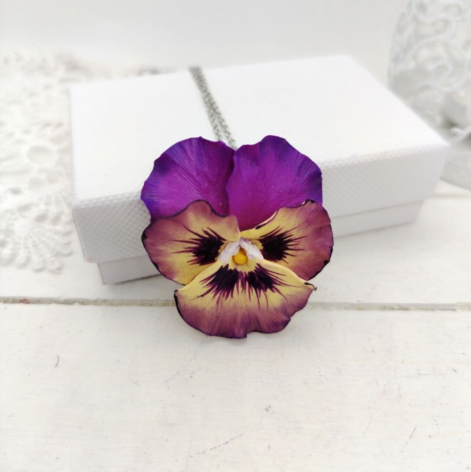 Tagi: #biżuteria na prezent, #bratek fioletowy, #kwiatowy wzór, #romantyczny naszyjnik