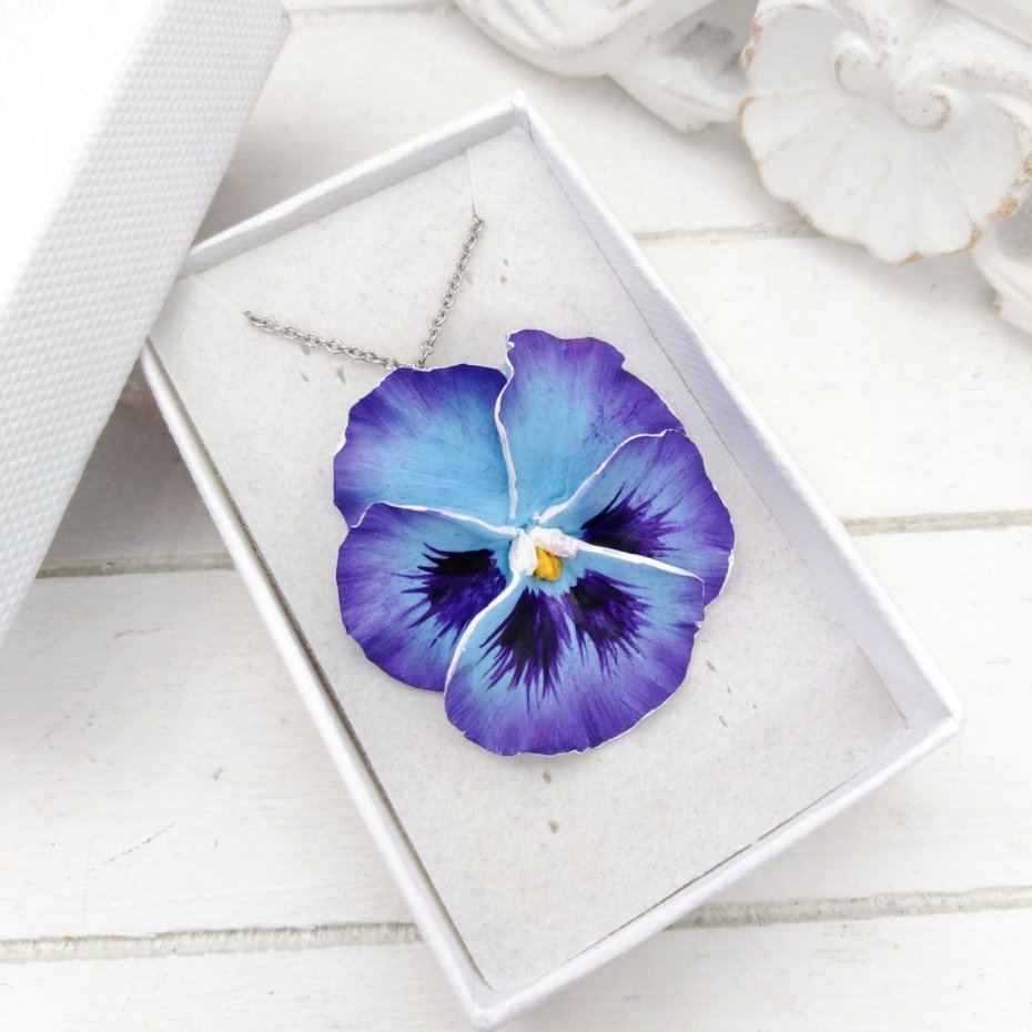 Tagi: #biżuteria na prezent, #bratek fioletowy, #kwiatowy wzór, #romantyczny naszyjnik