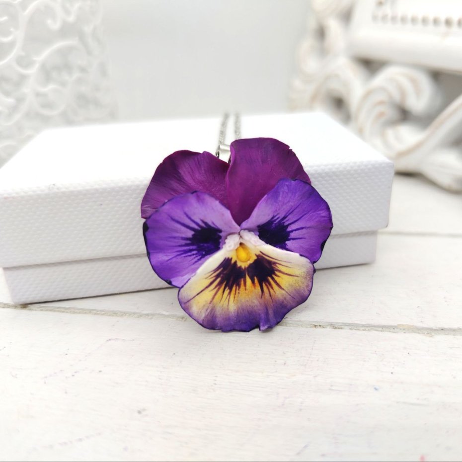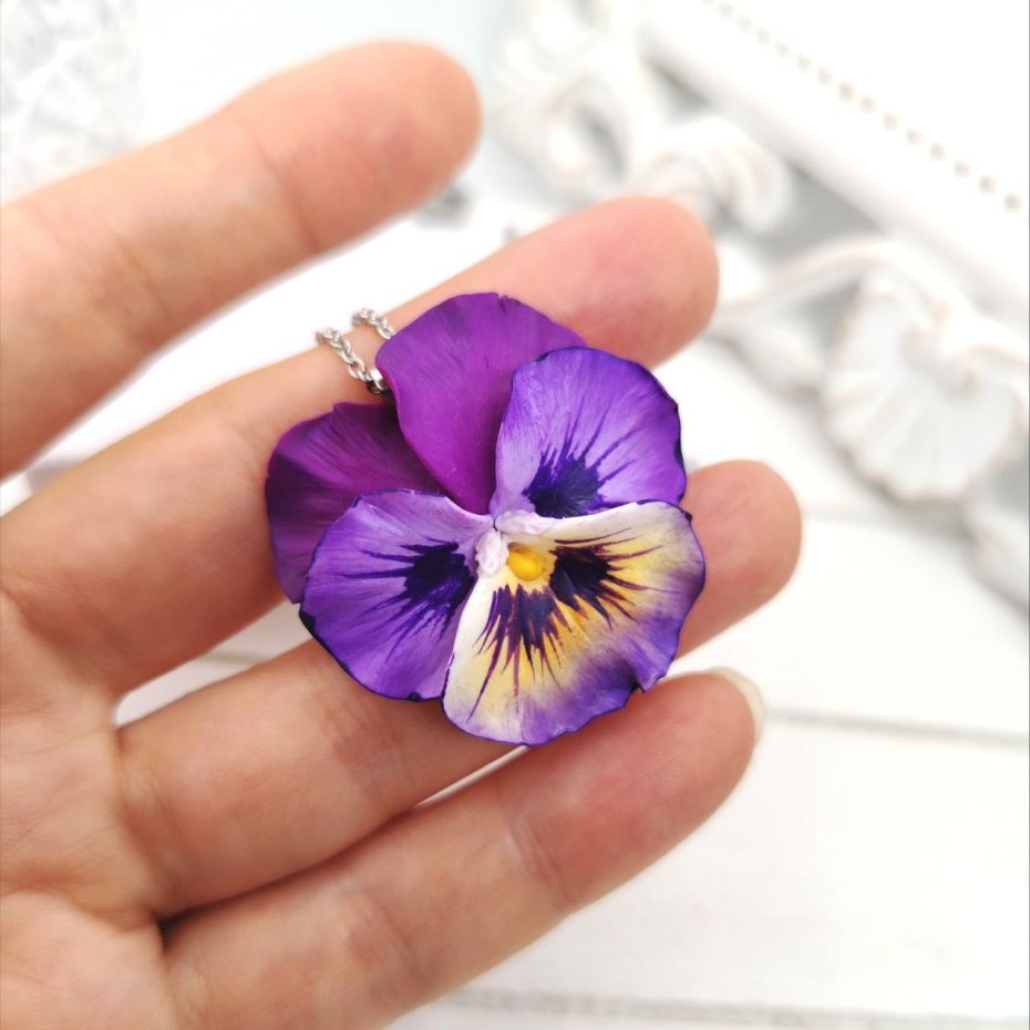 Tagi: #biżuteria na prezent, #bratek fioletowy, #kwiatowy wzór, #romantyczny naszyjnik