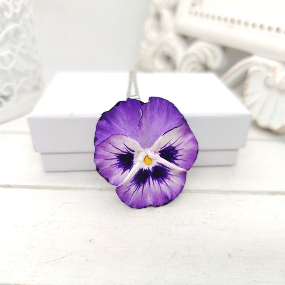 Tagi: #biżuteria na prezent, #bratek fioletowy, #kwiatowy wzór, #romantyczny naszyjnik