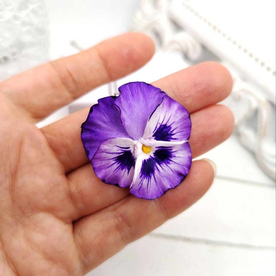 Ręcznie wykonany naszyjnik z uroczym kwiatem bratka o wysokości około 4 cm.