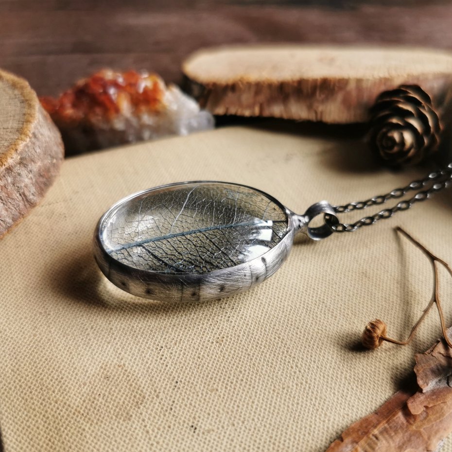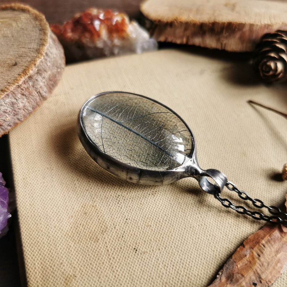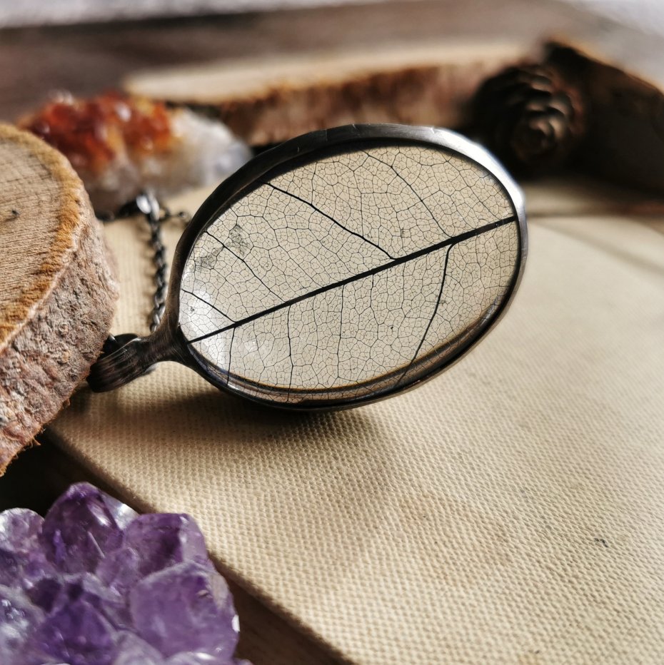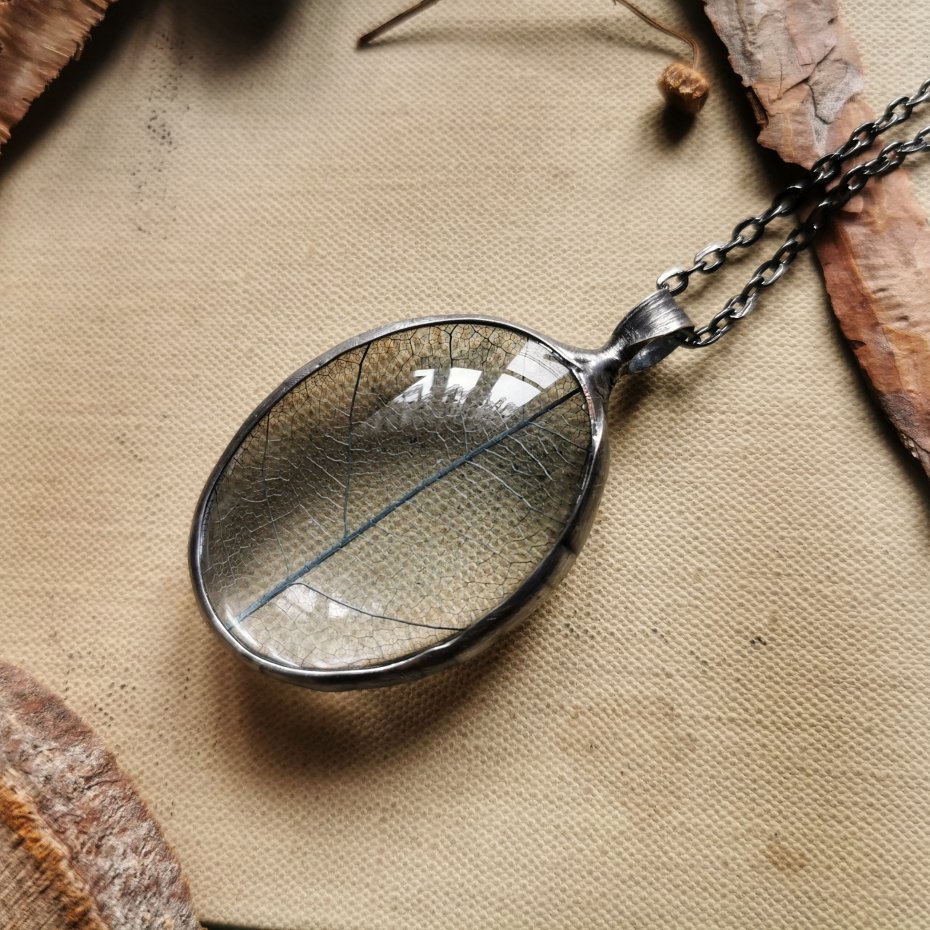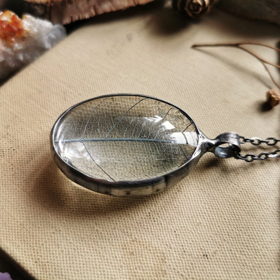♥ Naszyjnik owalny ze szkieletem liścia magnolii ♥