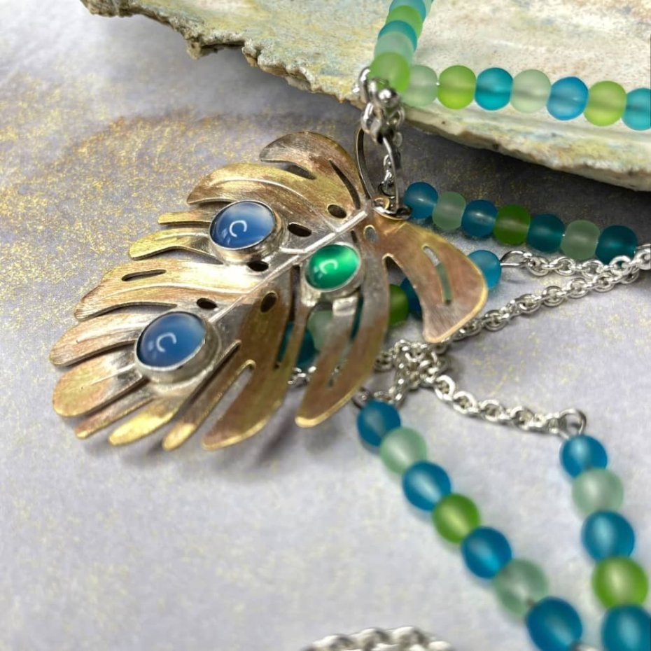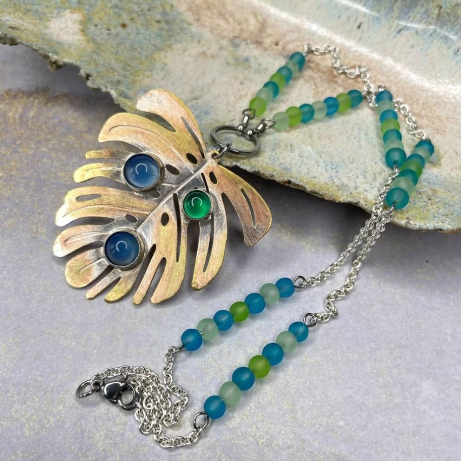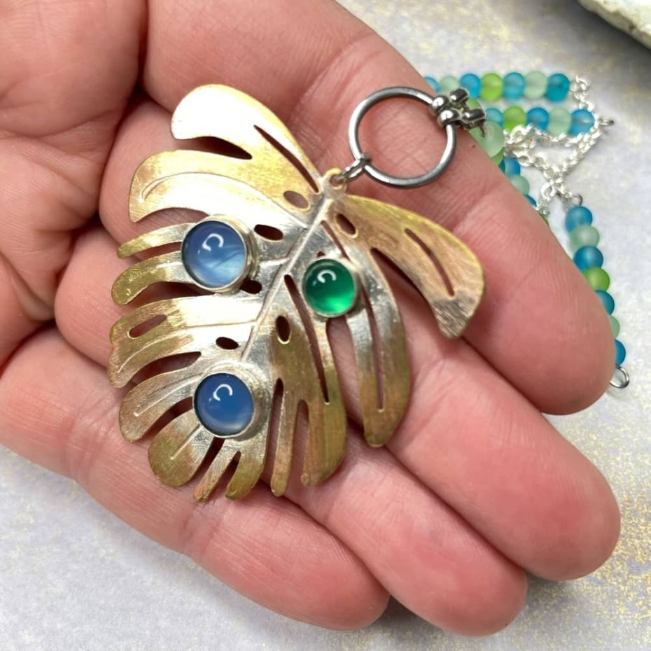 Tagi: #naszyjnik monstera, #wisior z agatem, #wisior z liściem, #z niebieskim agatem