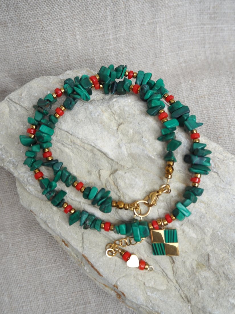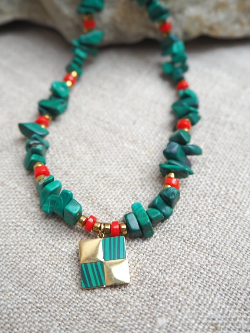 Tagi: #biżuteria autorska, #kamienie naturalne, #malachit koral czerwony, #vintage korale