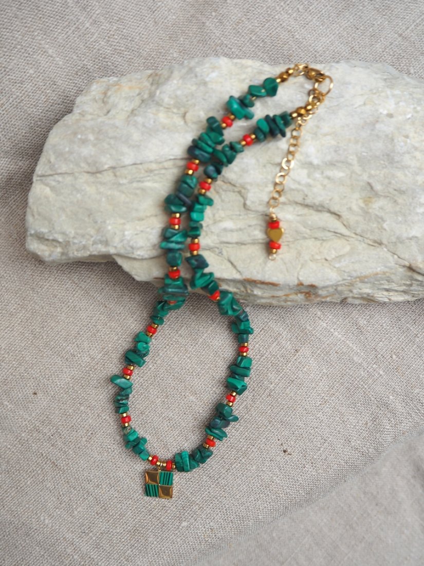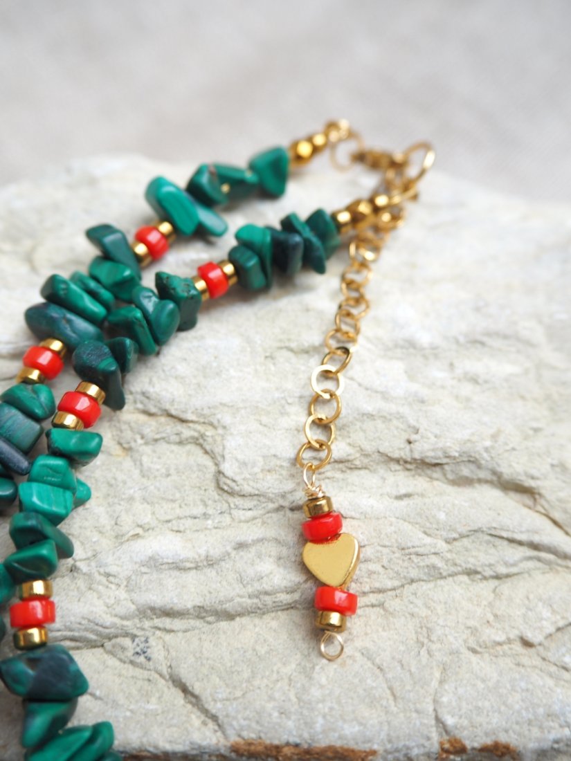 To biżuteria, która ma duszę i energię natury. Naszyjnik z malachitu z kamieniem koral marki DomilkowyDomek to wyjątkowy dodatek wykonany ręcznie z naturalnych kamieni.