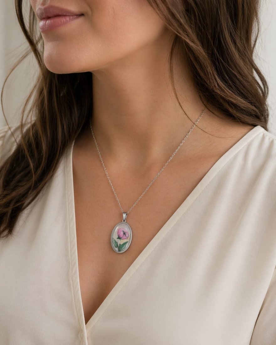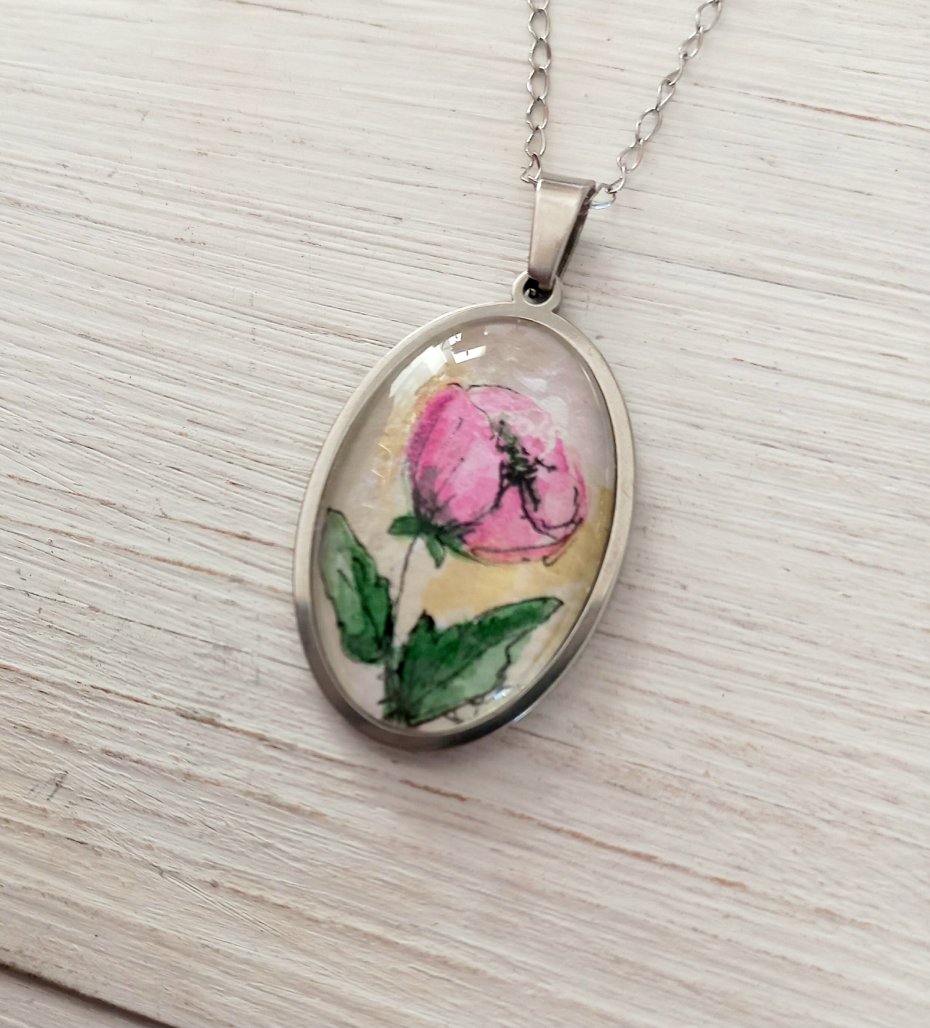 Tagi: #biżuteria artystyczna, #naszyjnik na prezent, #prezent dla mamy babci kobiety, #wisiorek ręcznie malowany