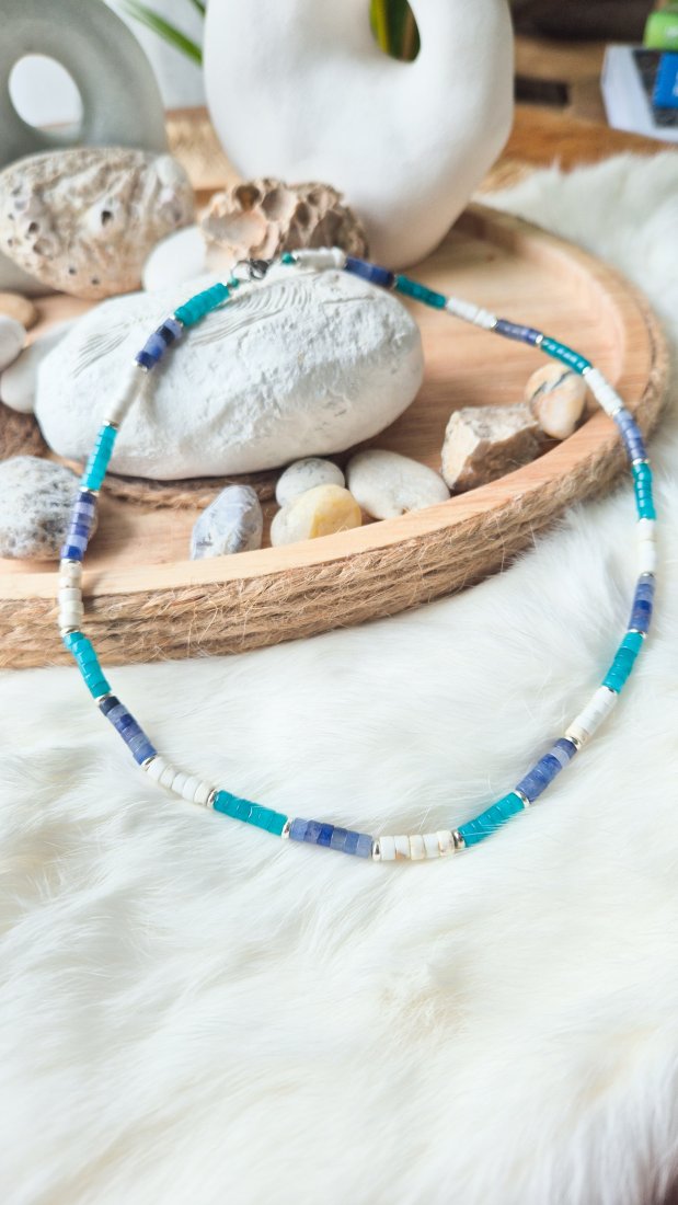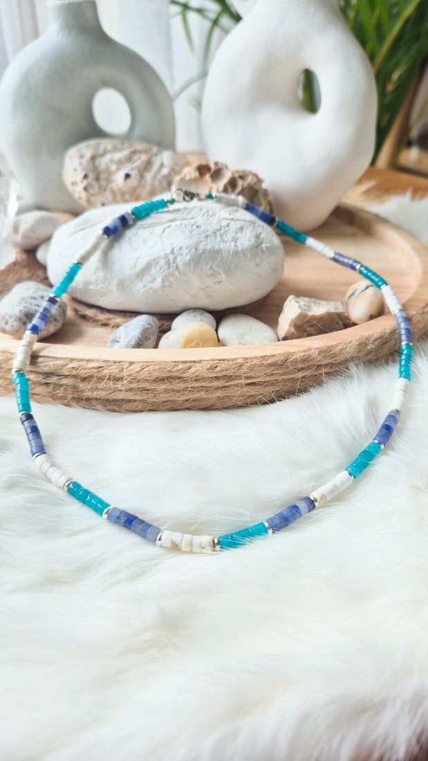 Naszyjnik z kamieni m.in. awenturyn niebieski,magnezyt,jadeit