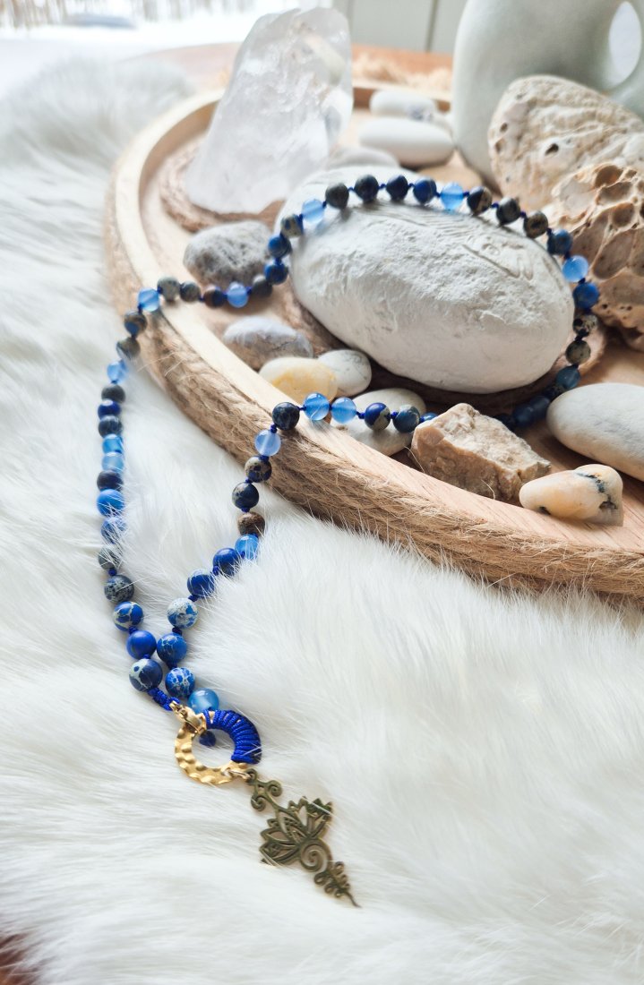 Tagi: #jaspis cesarski, #lapis lazuli, #naszyjnik z kamieni, #onyks niebieski