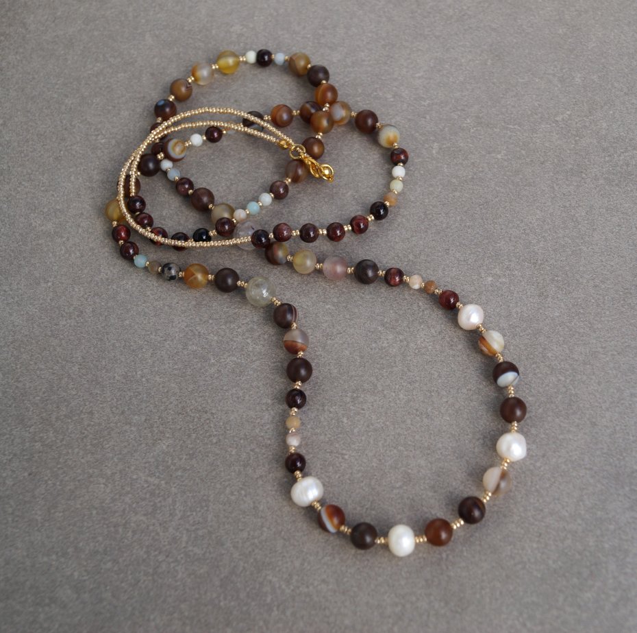 Tagi: #długi naszyjnik boho, #elegancka biżuteria, #naszyjnik z minerałów, #naszyjnik z pereł