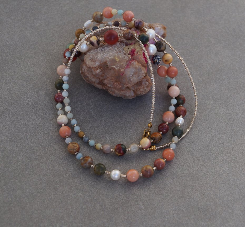 Każdy egzemplarz jest unikalny, tworzony ręcznie z naturalnych kamieni, dlatego poszczególne koraliki mogą się nieznacznie różnić od siebie.