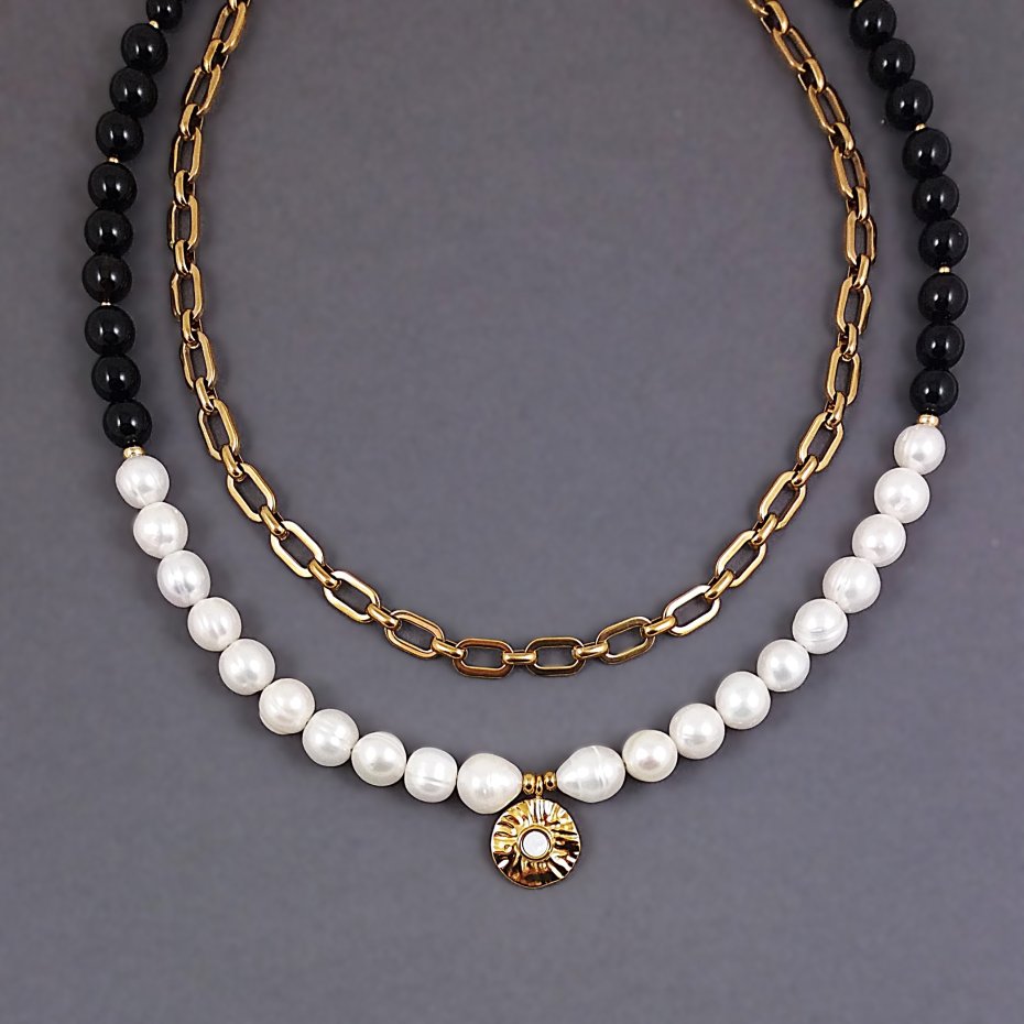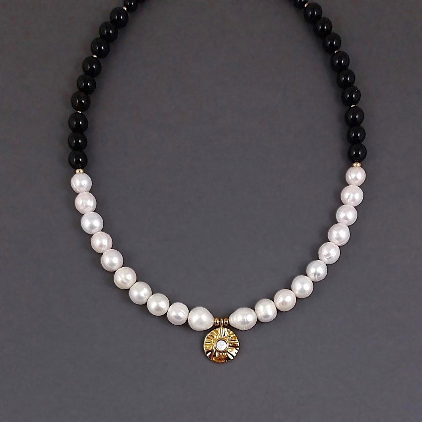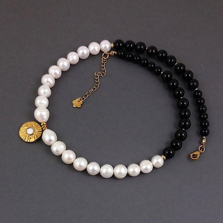 Tagi: #handmade super prezent, #onyks kamień czarny, #perły, #stal złocona