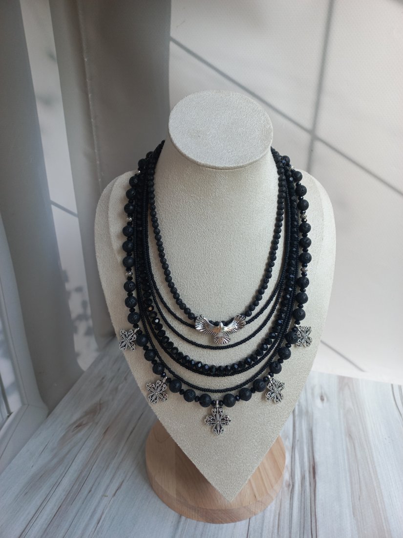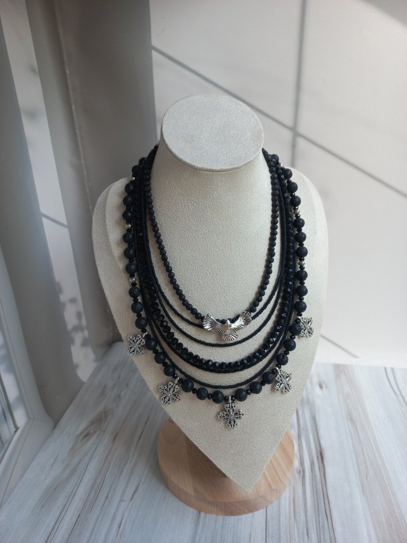 Tagi: #czarny naszyjnik, #naszyjnik z ptakiem i krzyżami