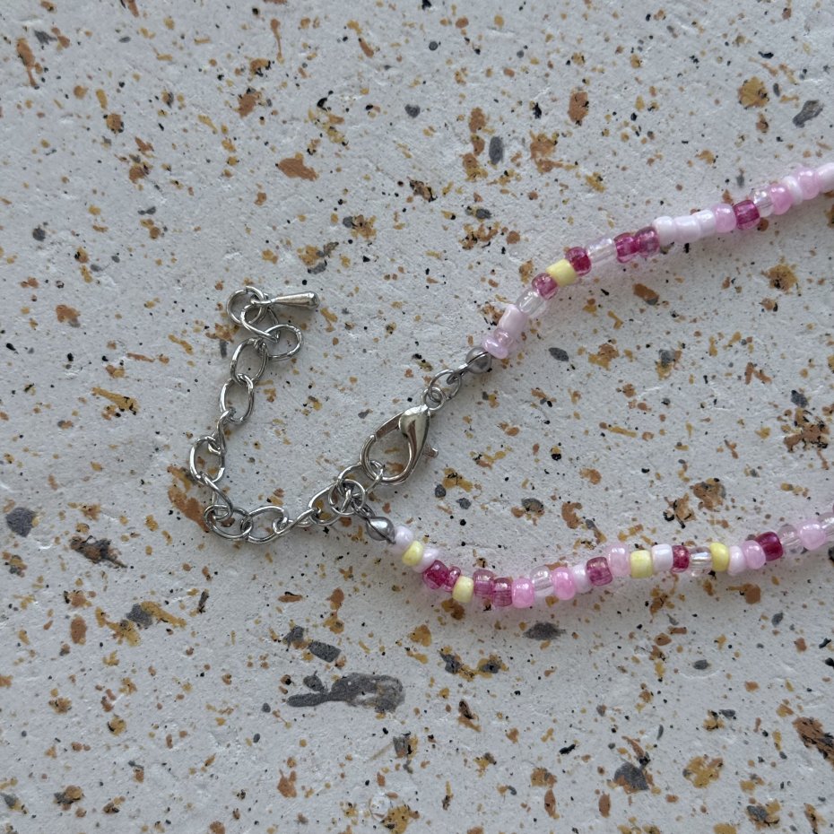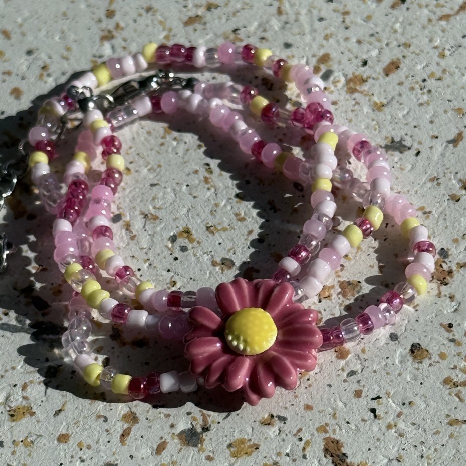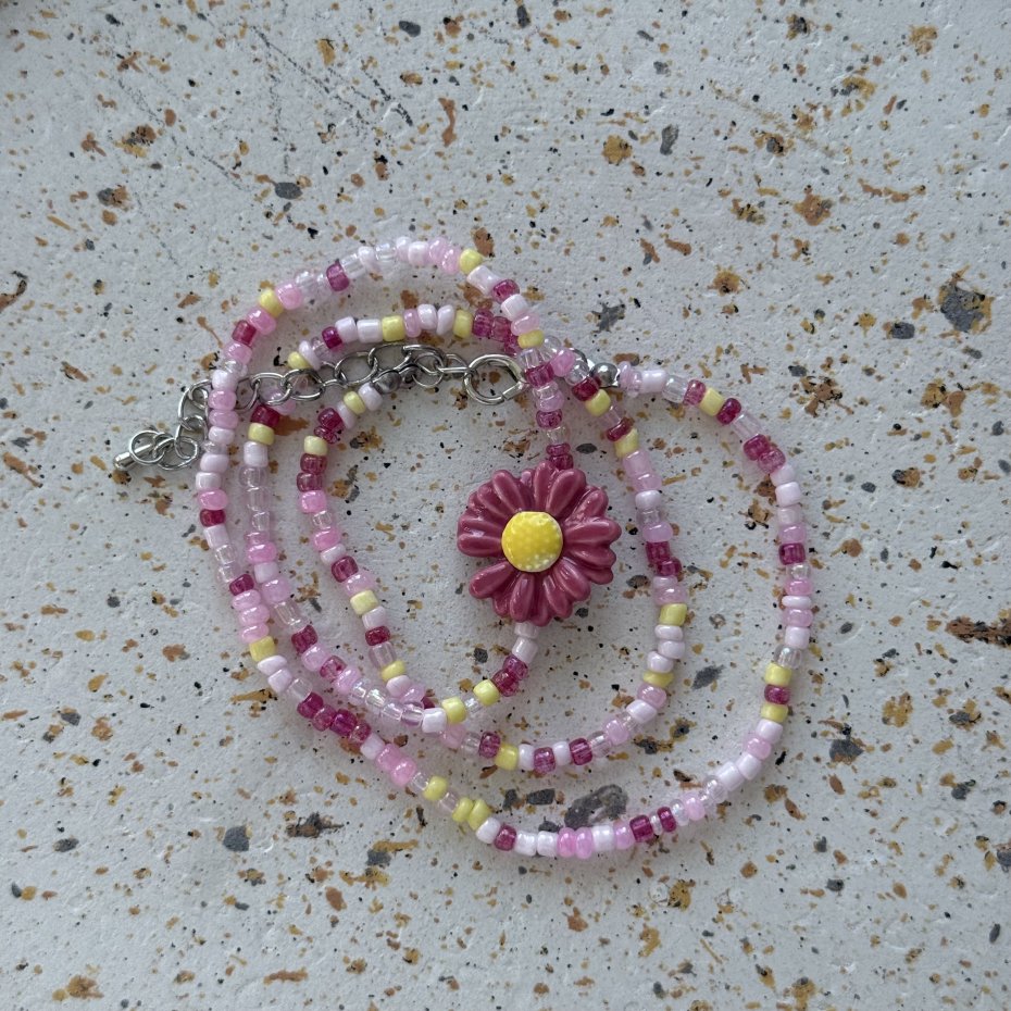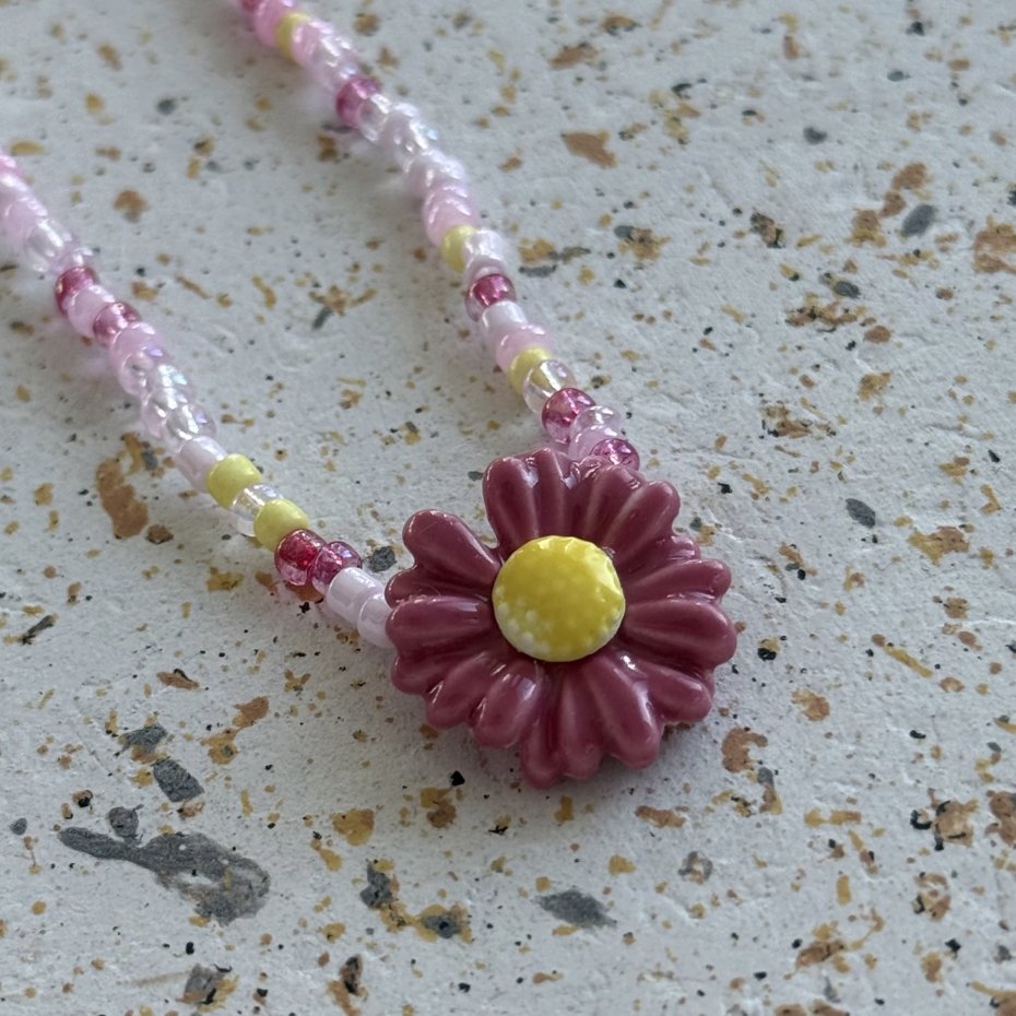 Delikatny, dziewczęcy i pełen letniej energii – ten ręcznie wykonany naszyjnik to małe dzieło sztuki, które doda uroku każdej stylizacji.