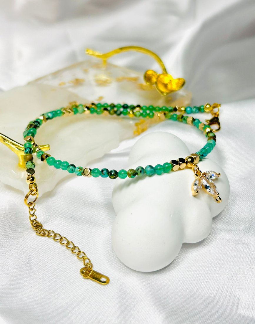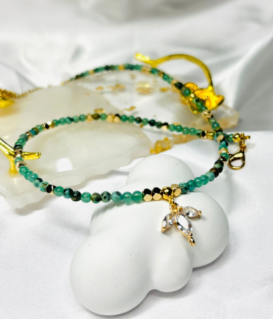 Zielony Awanturyn - Ma działanie wspomagające w pokonywaniu obaw i niepokoju, ułatwia osiągnięcie stanu relaksu i korzystnie oddziałuje na zdrowie całego organizmu. Może pomóc w walce z chorobami skóry, alergiami i łuszczycą, ale także korzystnie oddziałuje na układ nerwowy. Awanturyn wykazuje właściwości uspokajające, a także zdolność przyciągania szczęścia, bogactwa i dobrobytu.