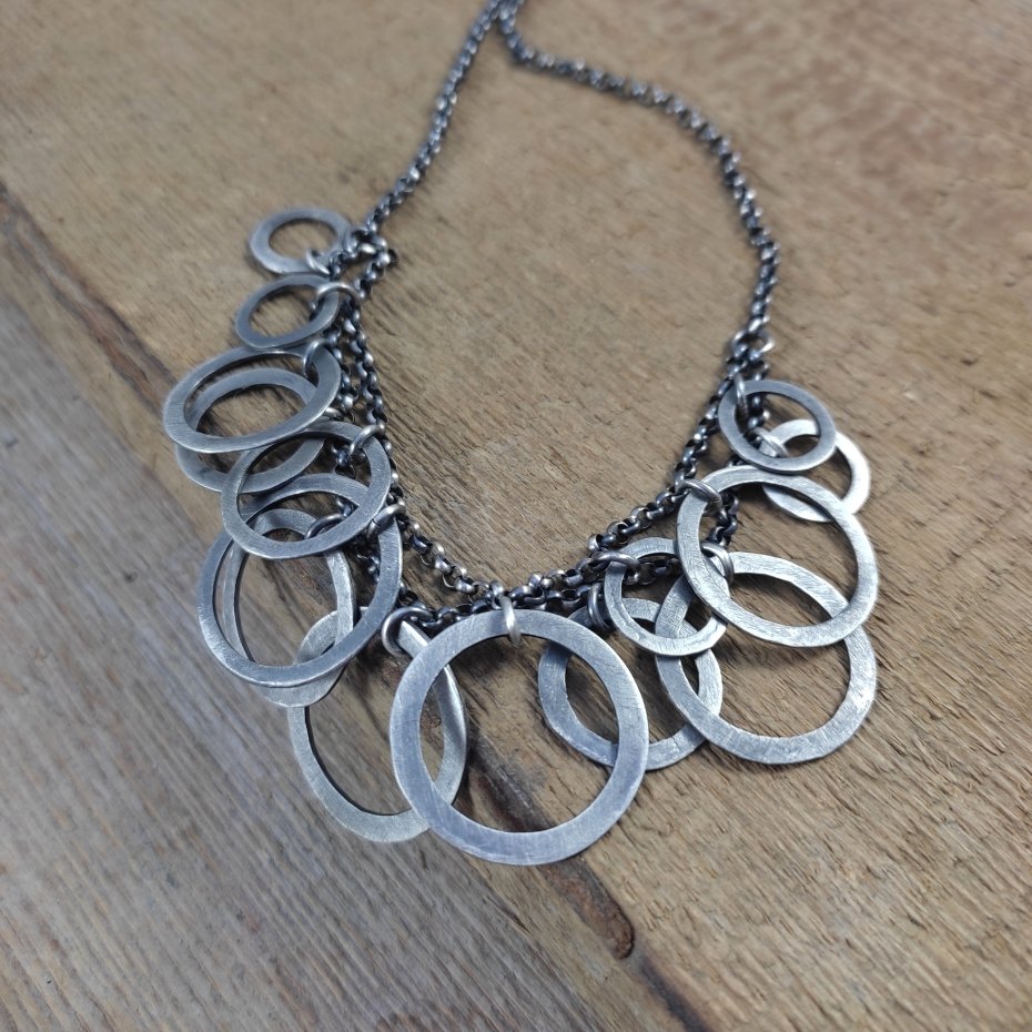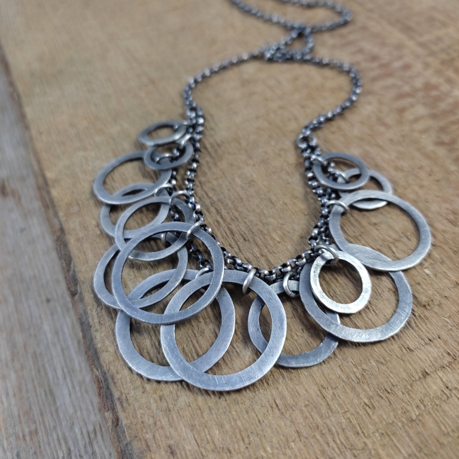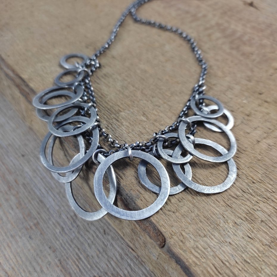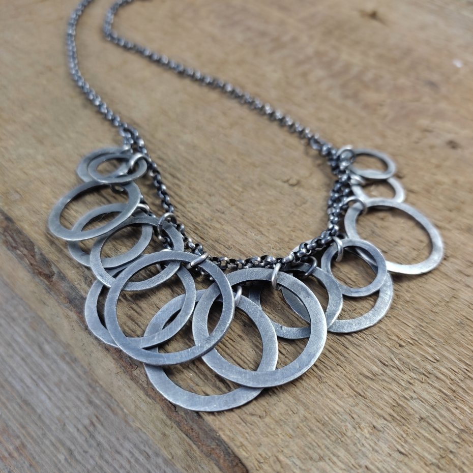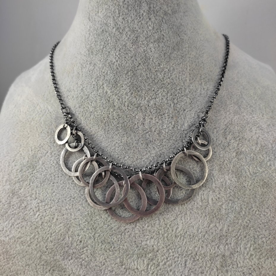 Naszyjnik wykonany ze srebra 925, oksydowanego i wypolerowanego (w tym kółka 12 -24 mm).