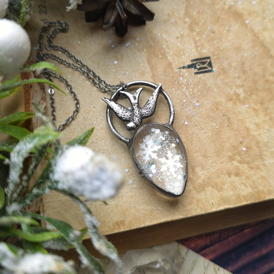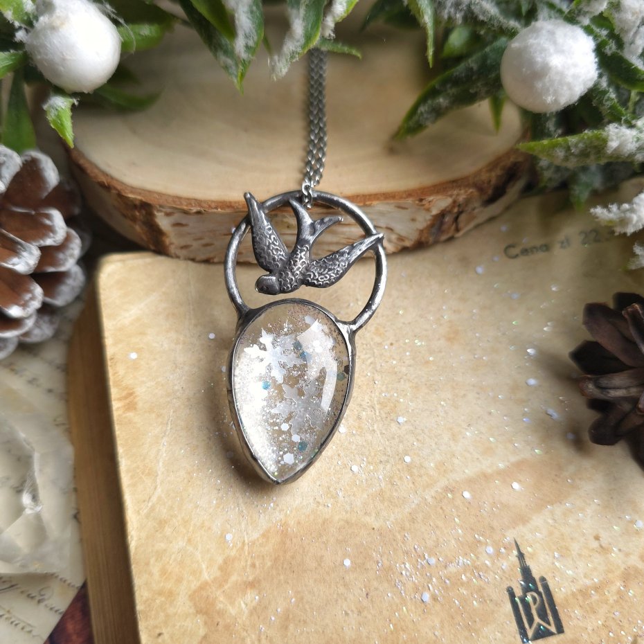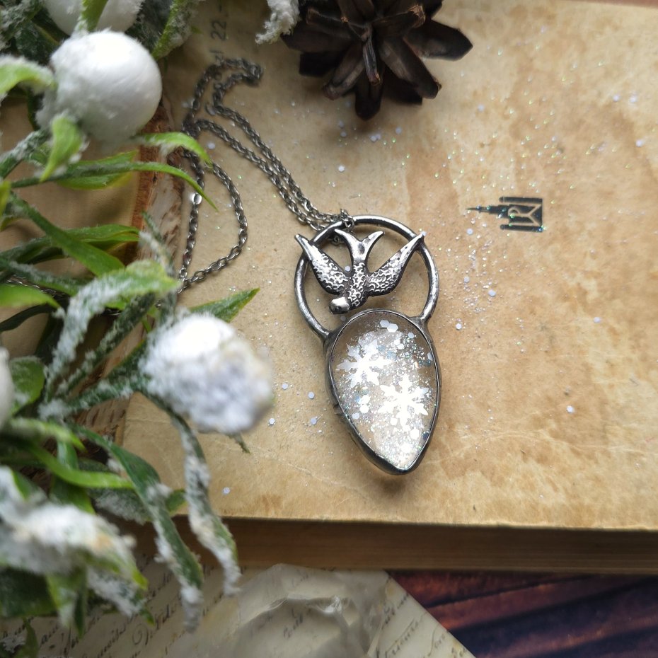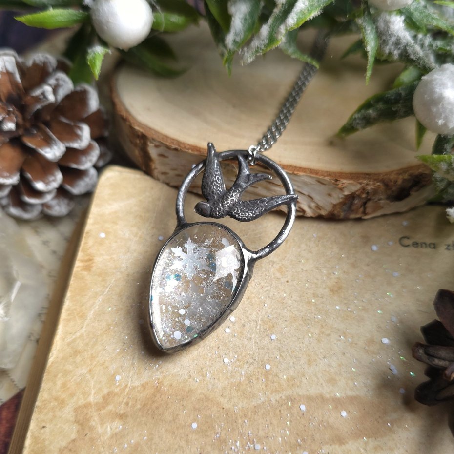 ♥ Naszyjnik kropla ze śnieżynkami ♥