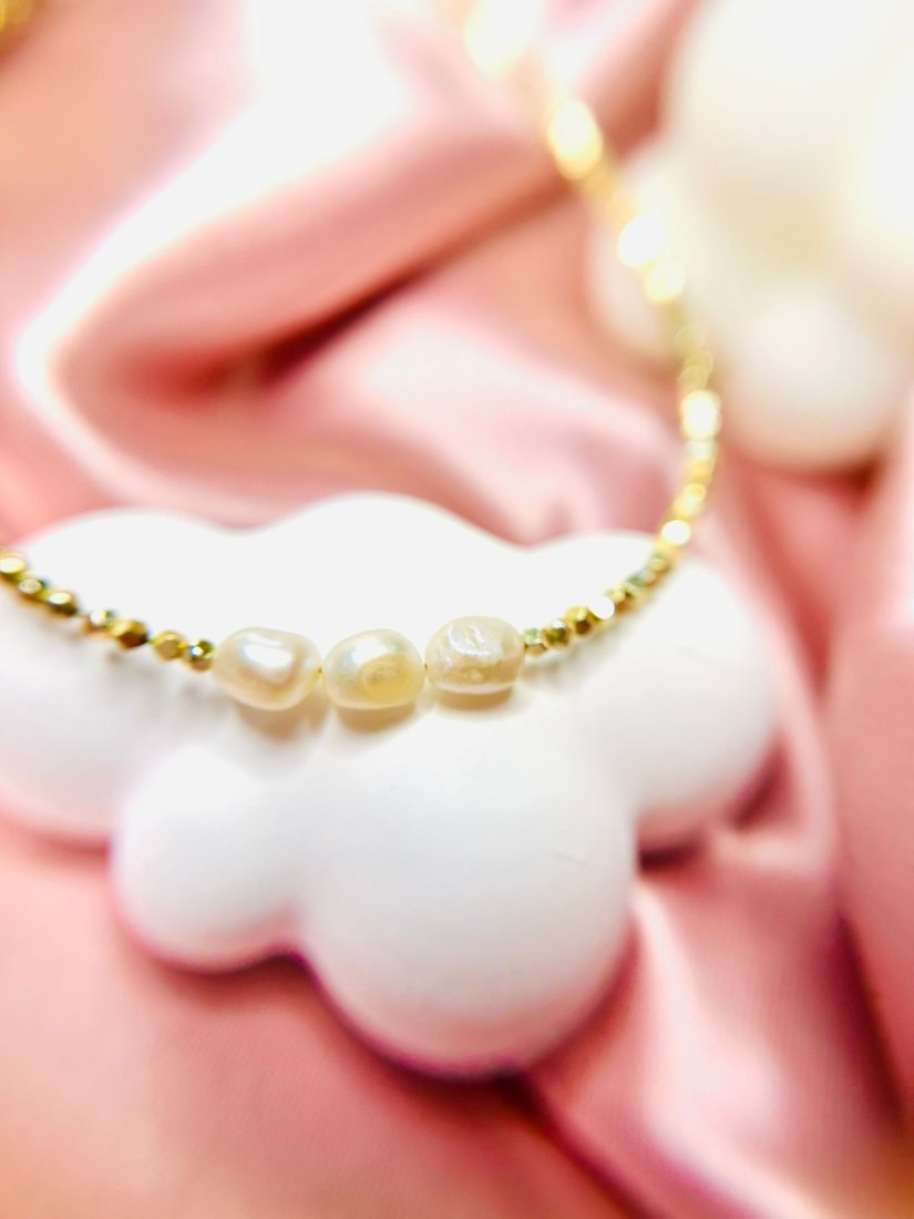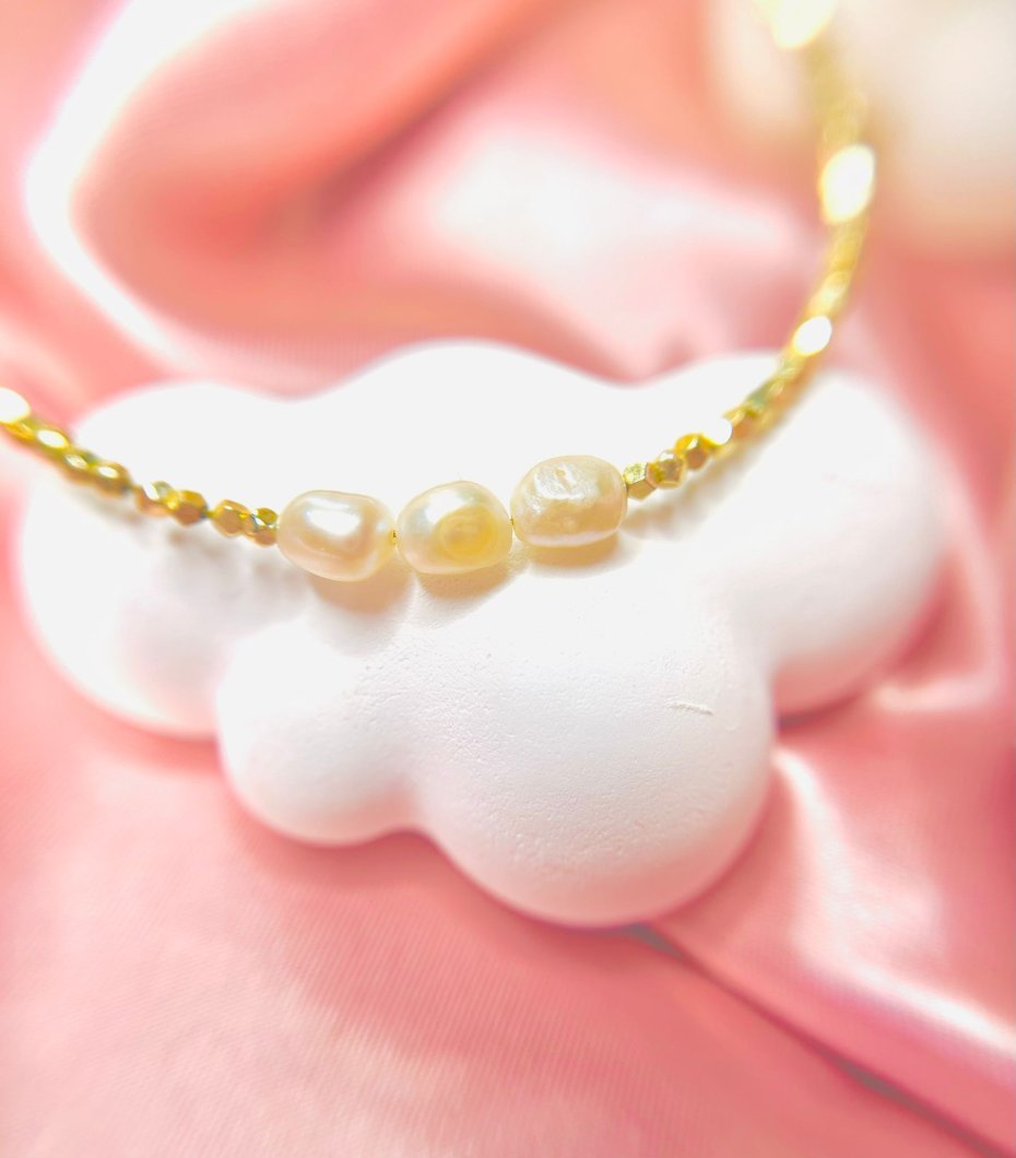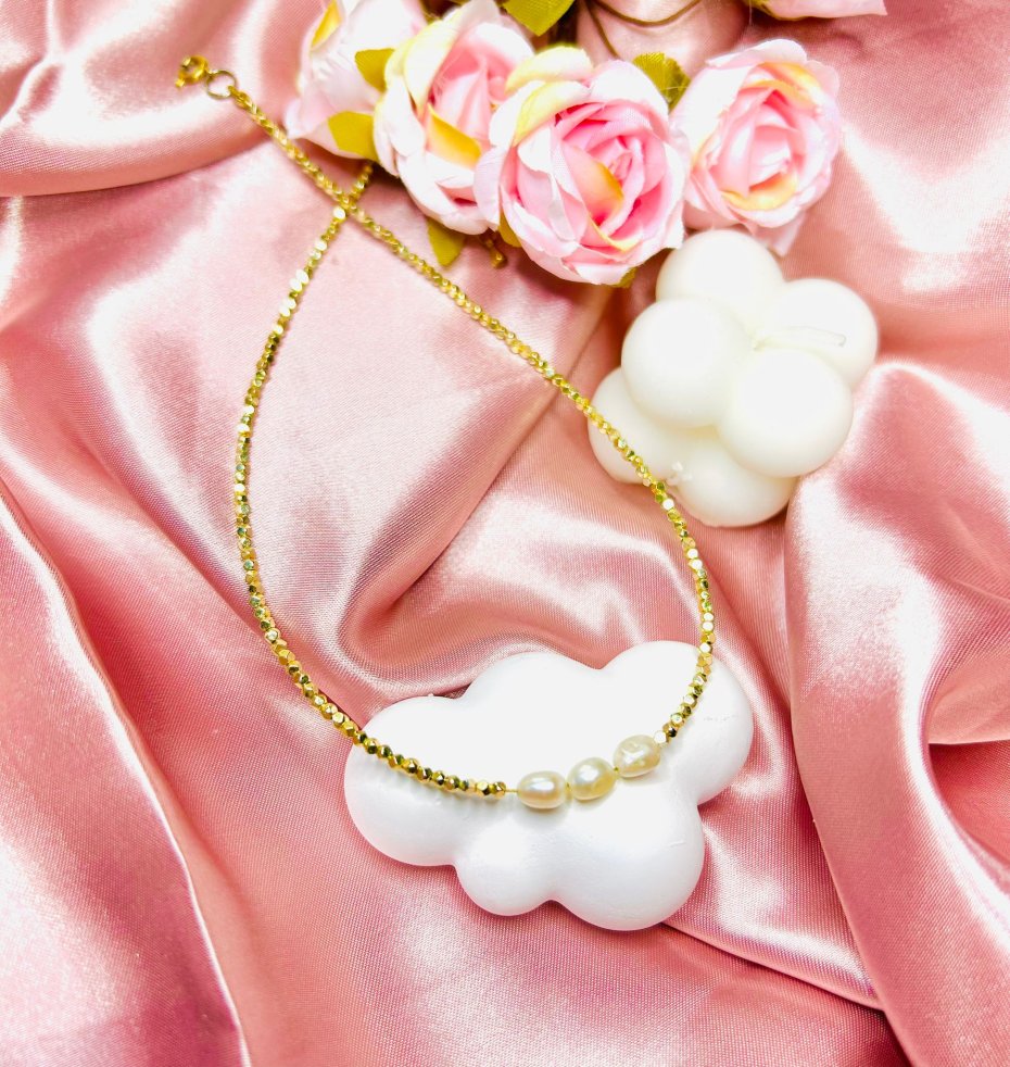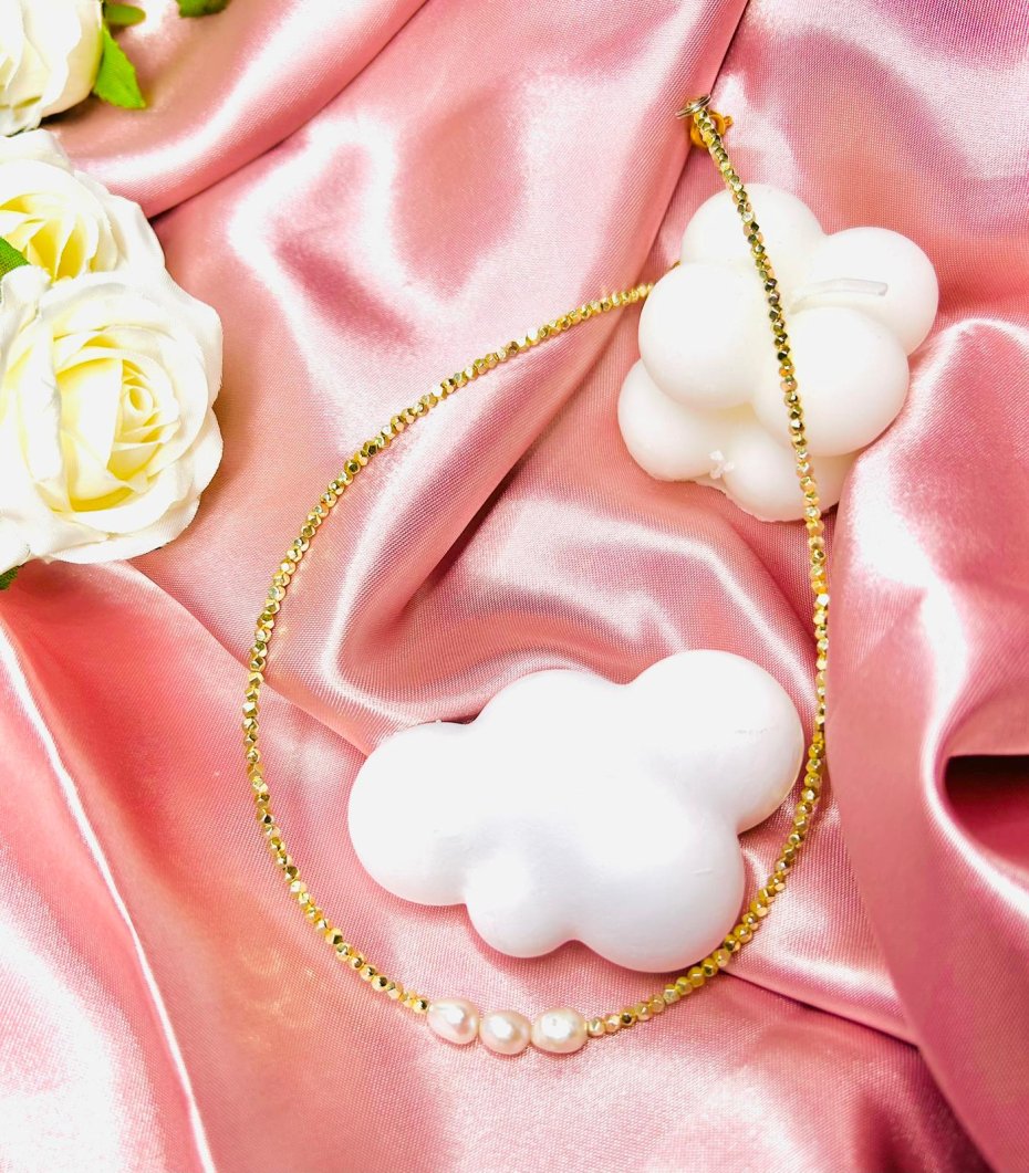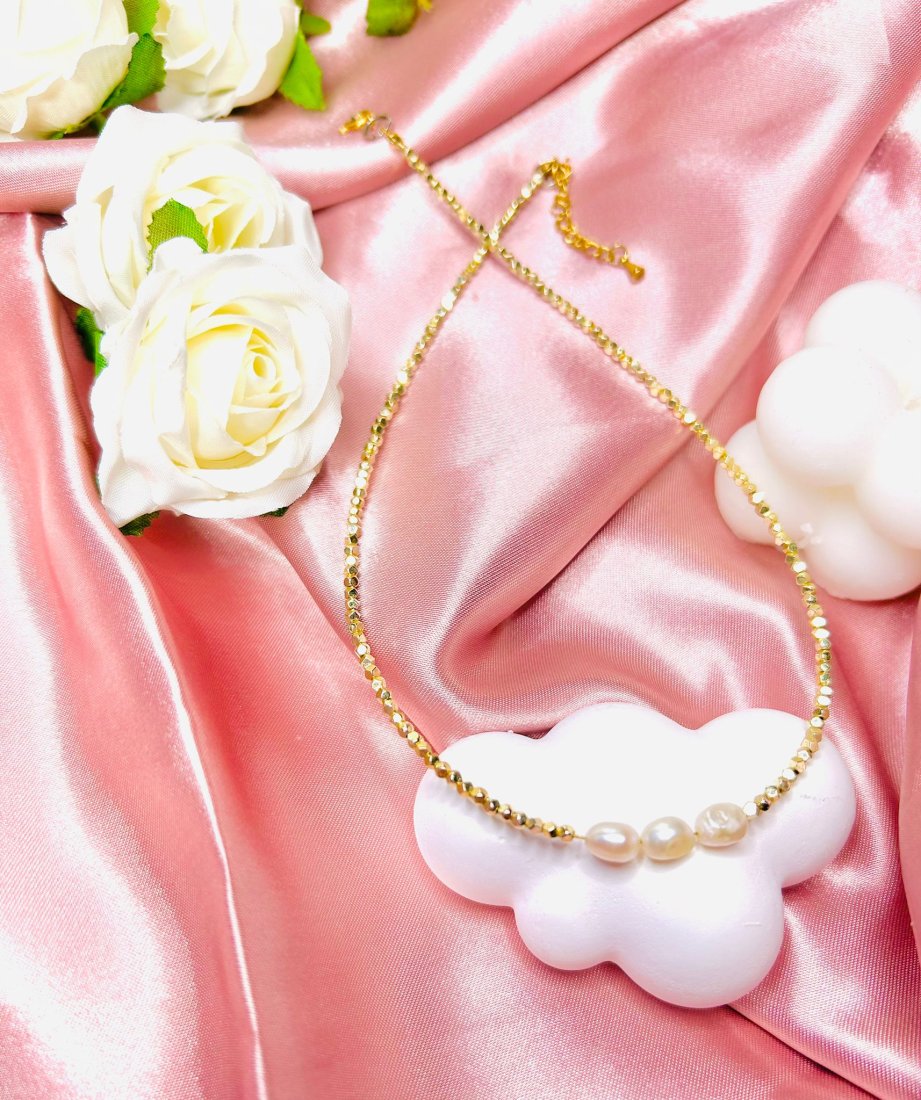 Naszyjnik ze złotego hematytu I perełek słodkowodnych. Naszyjnik wykonany ręcznie. :)