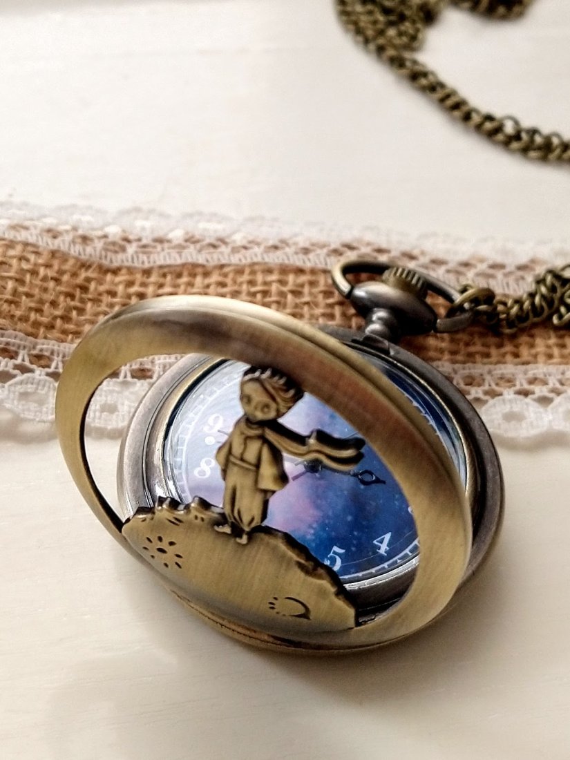 Piękny duży otwierany wisior z zegarkiem i wizerunkiem Małego Księcia.