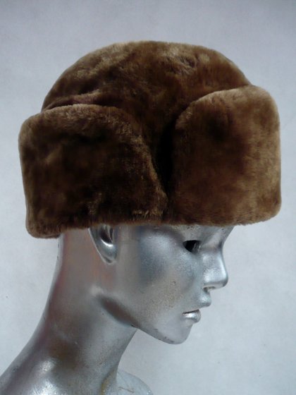 Gruba futrzana czapka VINTAGE uszyta z naturalnego futerka [niedźwiedzia] .Brak metki.Podszewka pikowana z ocieplaczem.Klapy w koło i nad czołem wyprofilowane.