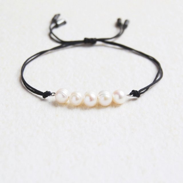 klasyczne połączenie złamanej bieli naturalnych pereł słodkowodnych z czernią sznureczka.