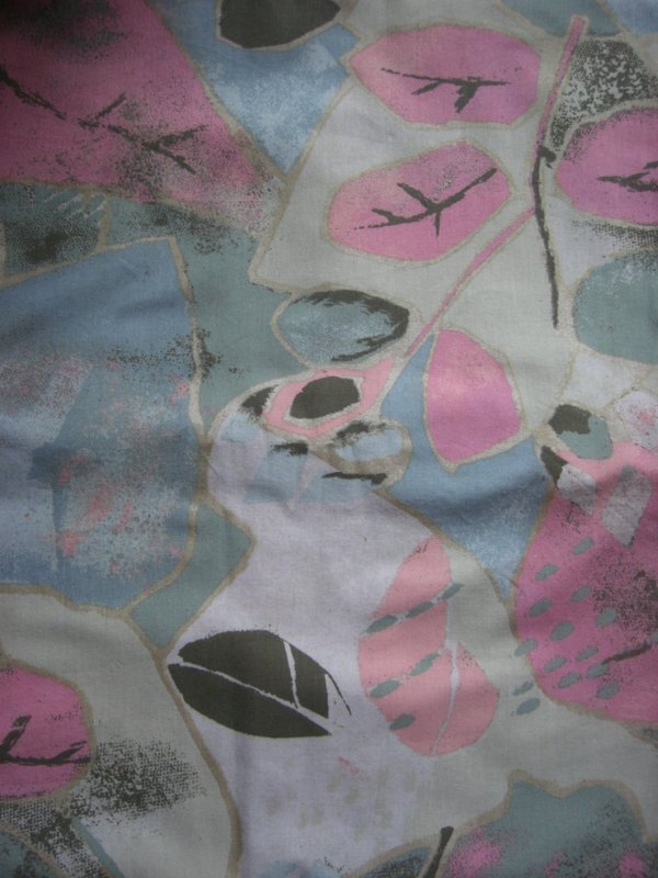 Kupon naturalnego materialu w radosnych pastelach ze szczypta zlota... Wzor jak malowany :) 170 (zszyte na pol 2 x 85 cm) x 185 cm. Stan zachowania bardzo dobry.