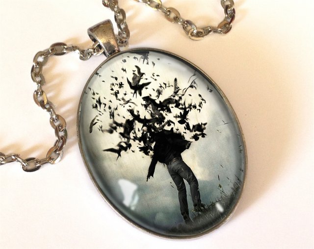 Ręcznie robiony duży owalny medalion z wysokiej jakości grafiką.