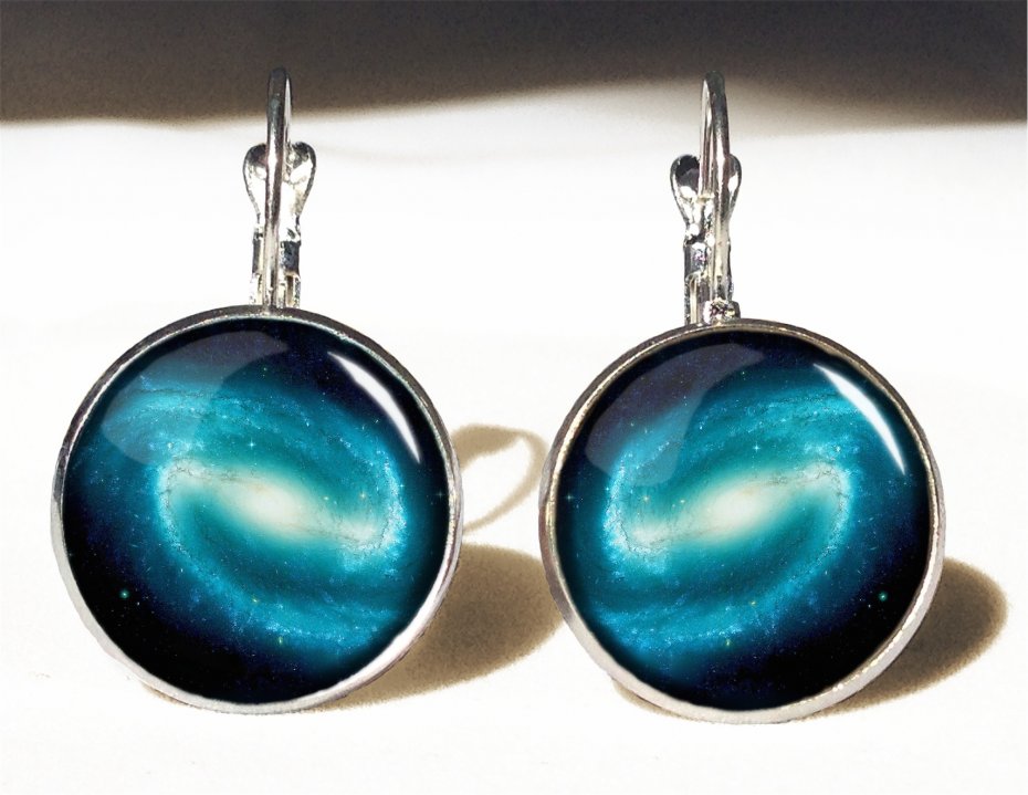 Ręcznie robione kolczyki wiszące z wysokiej jakości grafiką pokrytą wypukłym, powiększającym szkiełkiem.