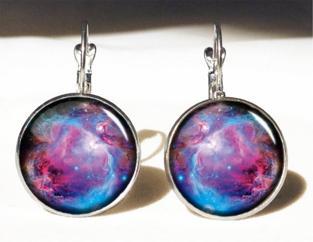 Ręcznie robione kolczyki wiszące z wysokiej jakości grafiką pokrytą wypukłym, powiększającym szkiełkiem.