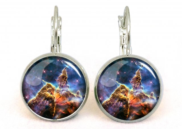 Ręcznie robione kolczyki wiszące z wysokiej jakości grafiką pokrytą wypukłym, powiększającym szkiełkiem.