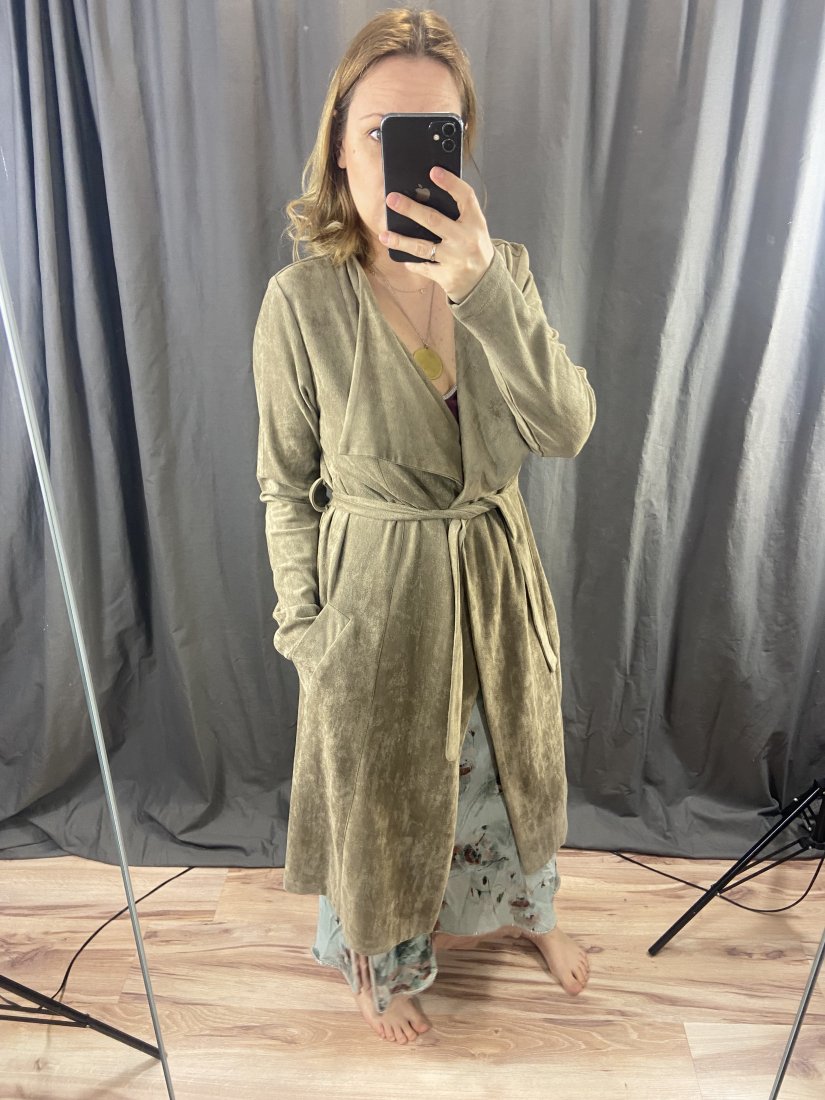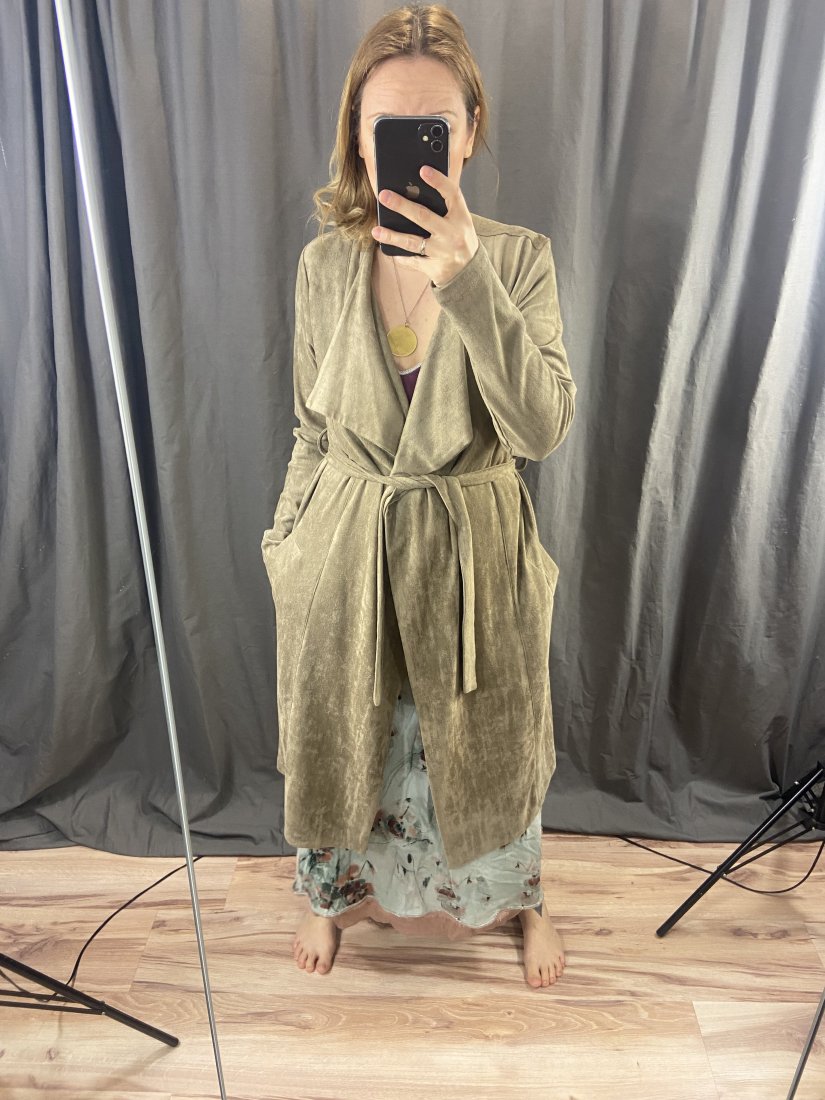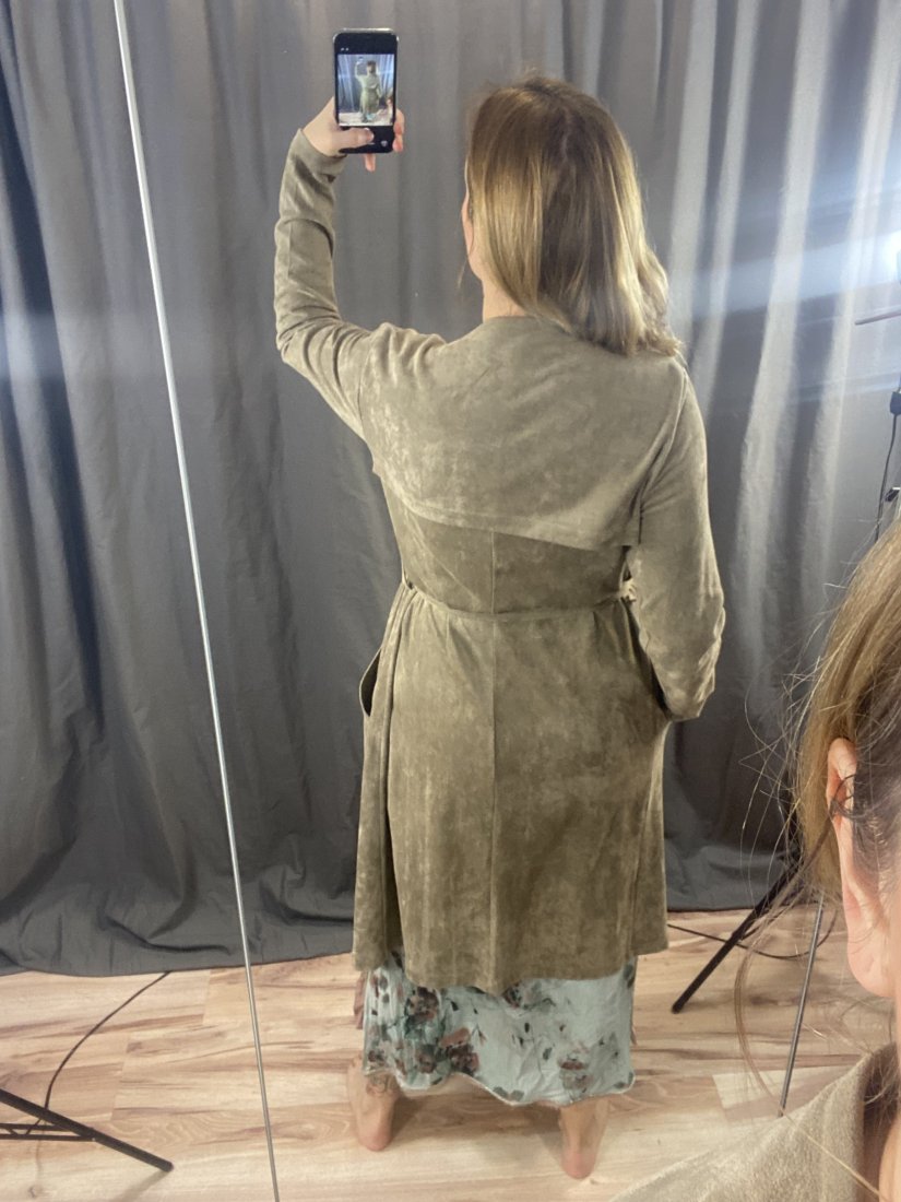 Przeboski, przemięciutki, przeuniwersalny płaszczyk od NEO NOIR. Z imitacji zamszu.