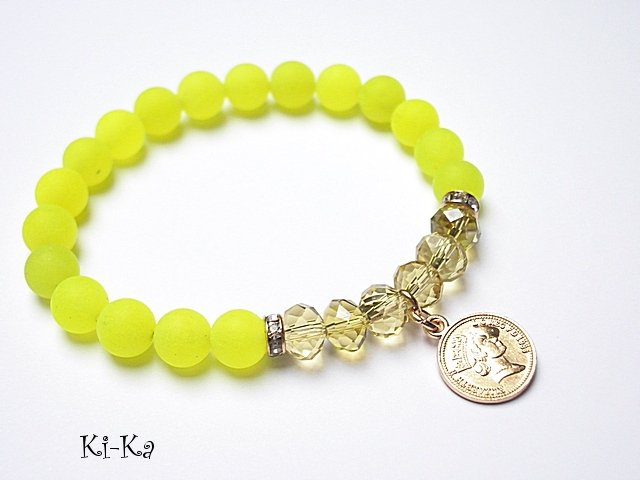 Bransoletka wykonana z kamieni naturalnych -matowe jadeity [8mm] kryształki [10mm] ,przekładki wysadzane kryształkami oraz elementów w kolorze bladego złota. Bransoletka na gumce silikonowej. Pasuje na nadgarstek 16-17cm. Biżuteria ozdobnie zapakowana