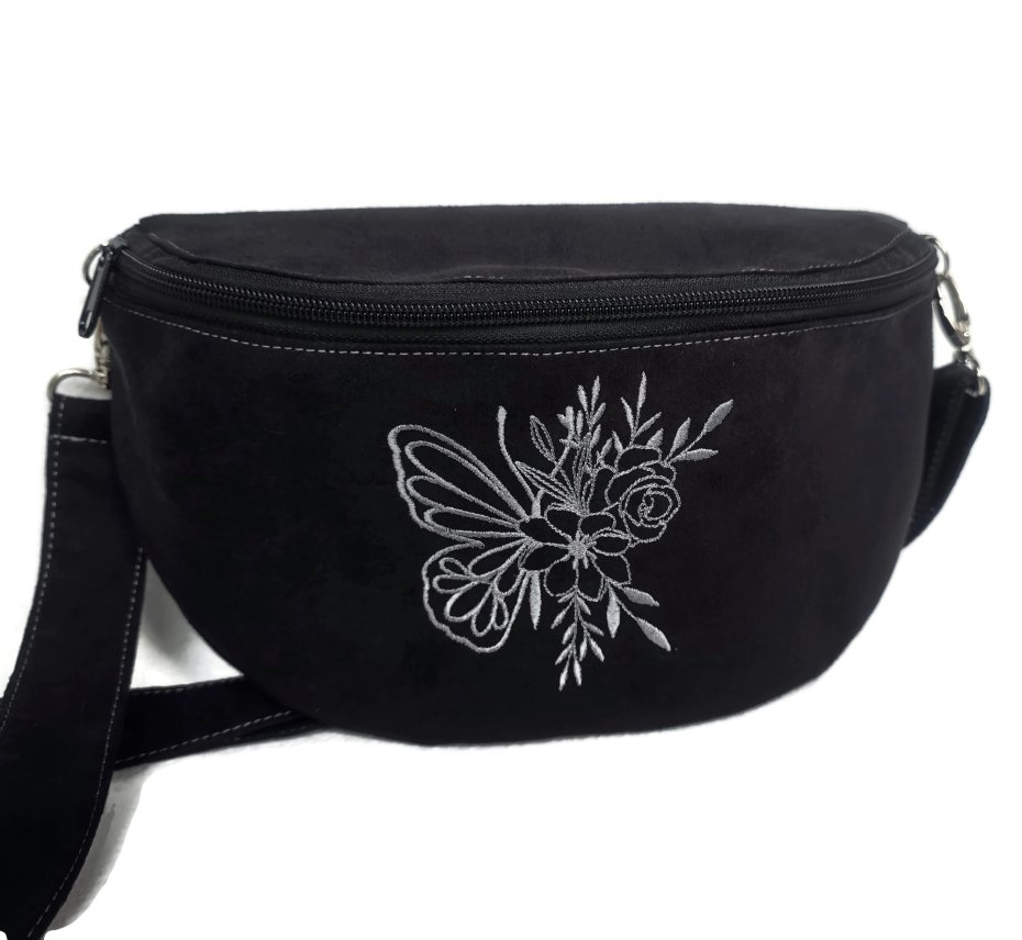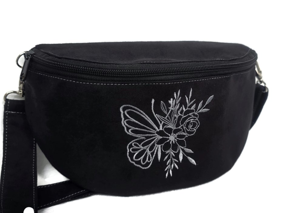 Nerka do noszenia na ramię z regulowanym paskiem, zapinana na suwak, w środku mała kieszonka na suwak.